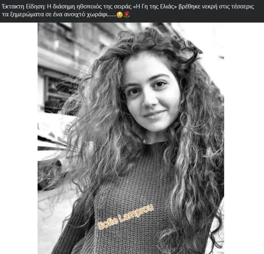 Η ανάρτηση έκανε λόγο πως η ηθοποιός βρέθηκε νεκρή σε χωράφι, γεγονός που προκάλεσε αναστάτωση σε κοντινά της πρόσωπα και τηλεθεατές.