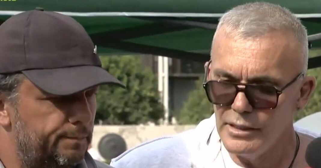 Δίπλα του στέκονται η σύζυγός του, φίλοι και υποστηρικτές, όπως ο Στέλιος Ρόκκος, που εκφράζουν την ανάγκη για δικαιοσύνη.