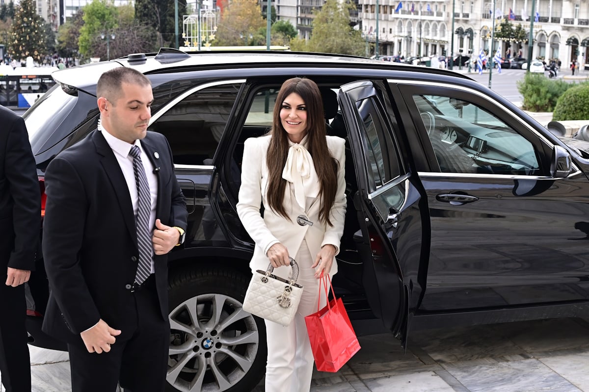 • Ο Νικήτας Κακλαμάνης την καλωσόρισε με ένα κόκκινο τριαντάφυλλο.