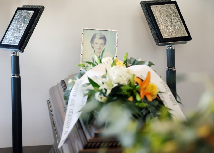 • Στην κηδεία της στο Α' Νεκροταφείο Αθηνών παρέστησαν συγγενείς, φίλοι και πολιτικές προσωπικότητες, ενώ η κόρη της, Έλενα Ακρίτα, ήταν εμφανώς συντετριμμένη.