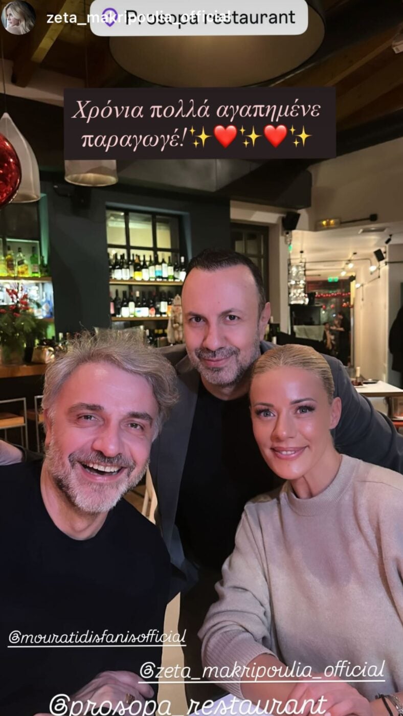 Μάλιστα, ο ίδιος αποφάσισε να διοργανώσει χθες, Τετάρτη 3/12 δείπνο για τα γενέθλιά του σε κεντρικό εστιατόριο της Αθήνας. Το παρών έδωσαν οι καλοί του φίλοι και ηθοποιοί, Ζέτα Μακρυπούλια και Φάνης Μουρατίδης.