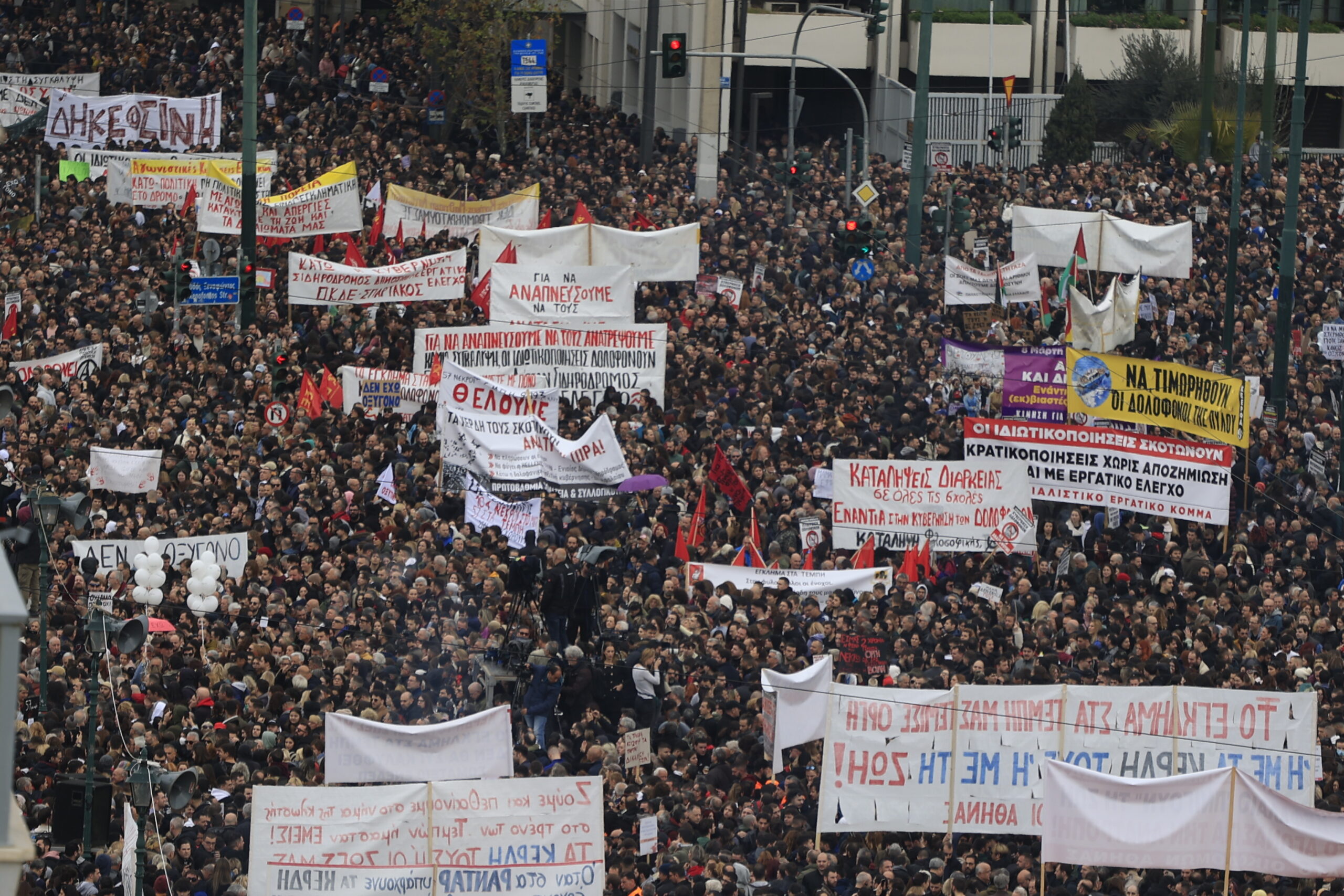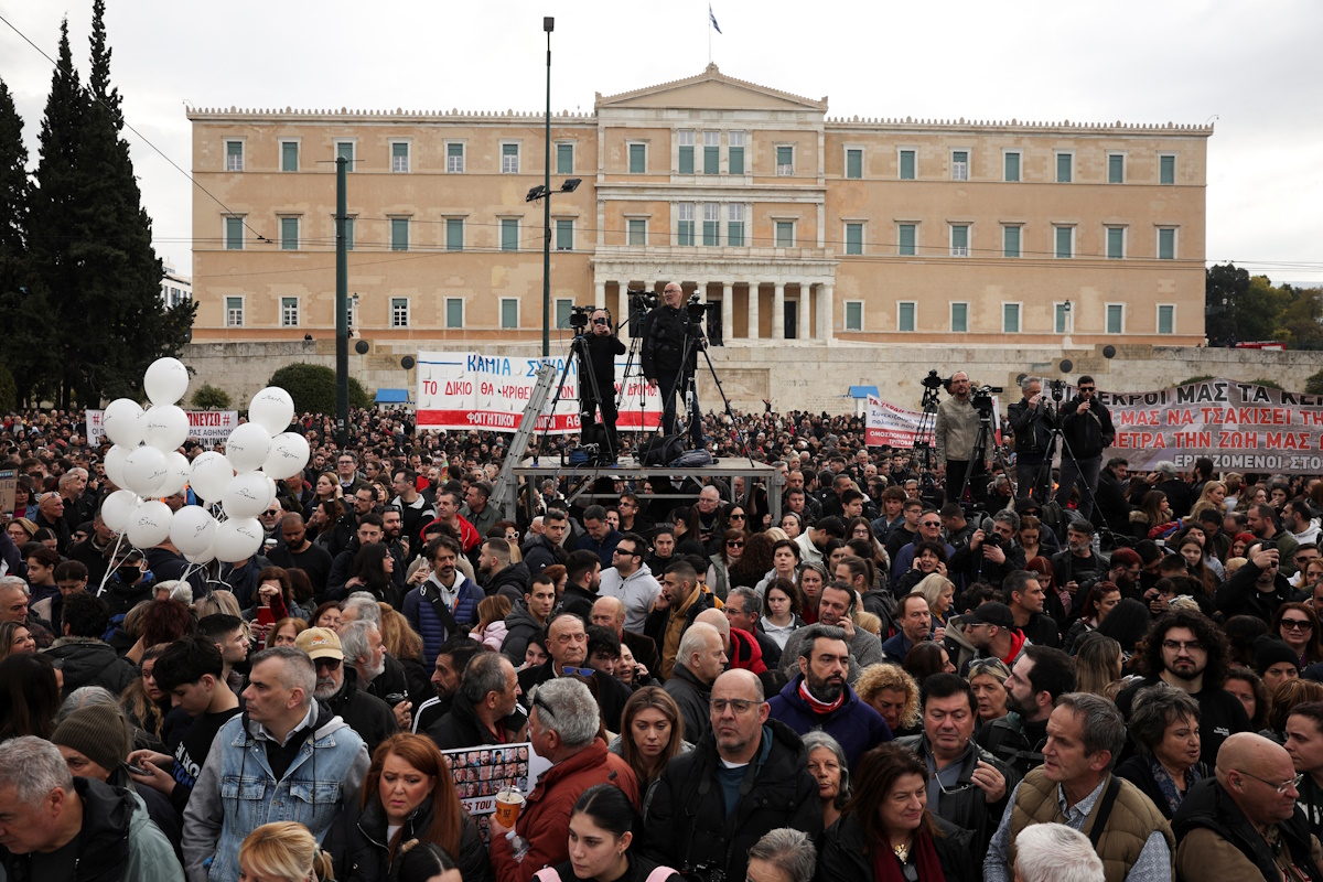 Στην Αθήνα, η μεγαλύτερη συγκέντρωση των τελευταίων χρόνων συγκεντρώνει πλήθος κόσμου στην πλατεία Συντάγματος, με τους σταθμούς του Μετρό να είναι ασφυκτικά γεμάτοι, καθώς οι πολίτες σπεύδουν να συμμετάσχουν στην εκδήλωση μνήμης.