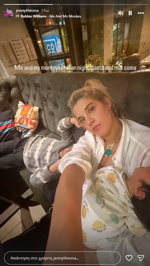 - Η Τζένη Θεωνά απολαμβάνει τη νέα καθημερινότητα με τα δύο παιδιά της, έχοντας φέρει στον κόσμο το δεύτερο παιδί της πριν από ένα μήνα.