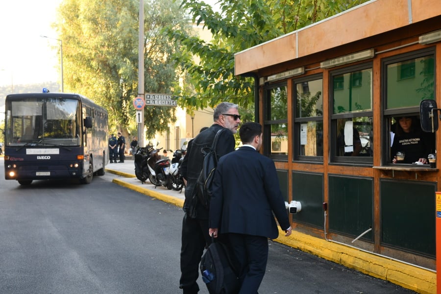 • Ο Μπισμπίκης έφτασε στα δικαστήρια λίγο πριν τις 9 το πρωί.