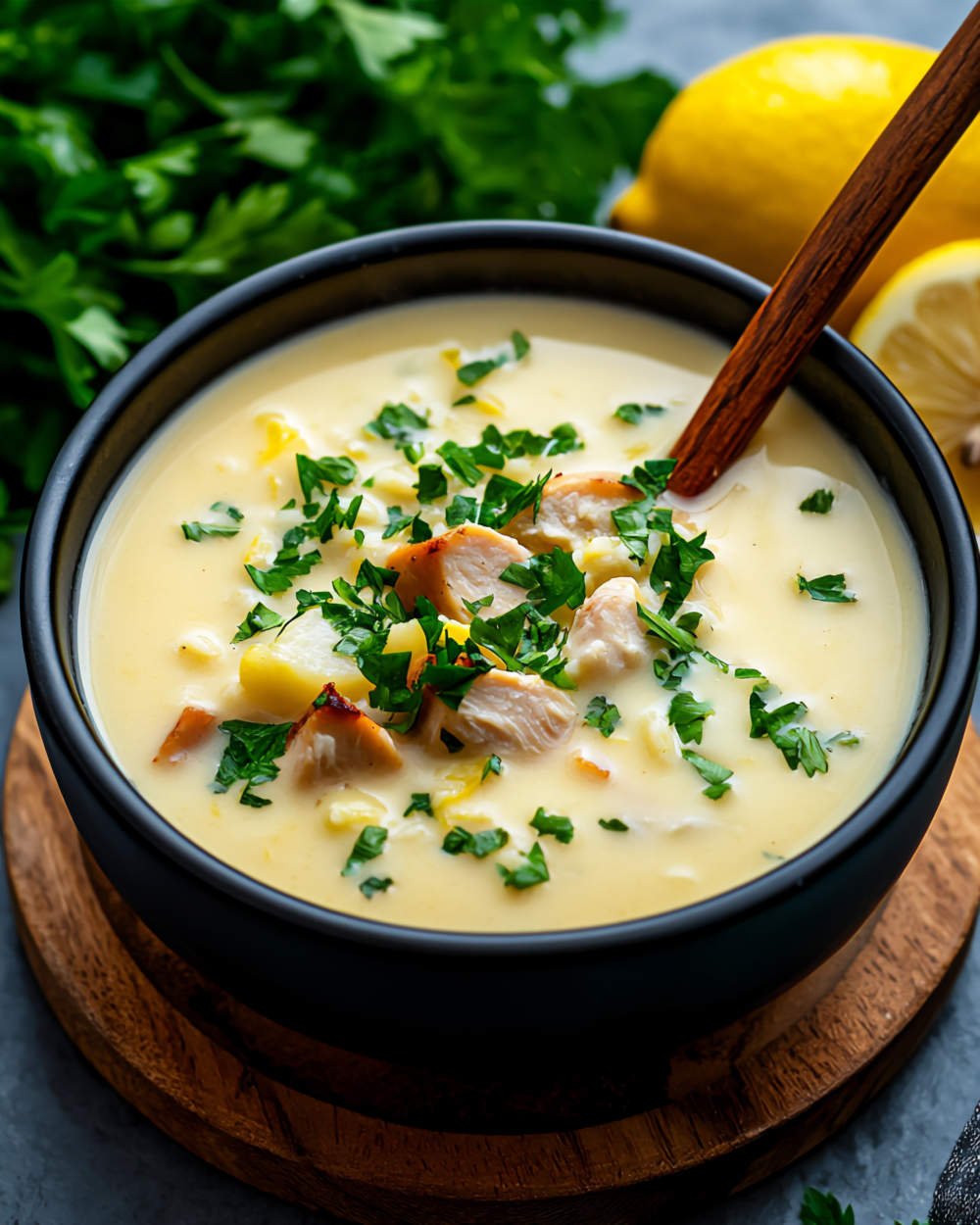 - Σταδιακή ενσωμάτωση ζωμού στο μείγμα αυγών και λεμονιού για εξισορρόπηση θερμοκρασίας.