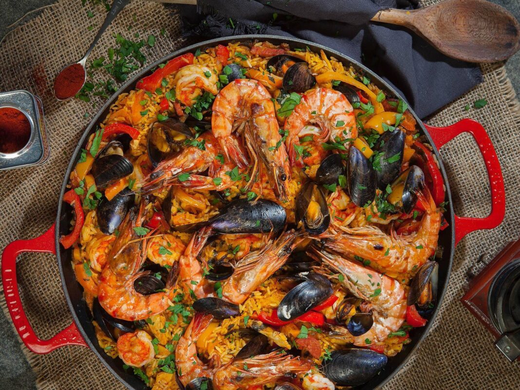 Η συνταγή για πάεγια με θαλασσινά περιλαμβάνει υλικά όπως γαρίδες, κοτόπουλο, τσορίζο, μύδια και ρύζι, συνδυασμένα με μπαχαρικά και λευκό κρασί. Ξεκινάτε σοτάροντας τις γαρίδες και το κοτόπουλο, προσθέτετε το λουκάνικο, κρεμμύδι, σκόρδο και βούτυρο, και στη συνέχεια το ρύζι με μπαχαρικά.