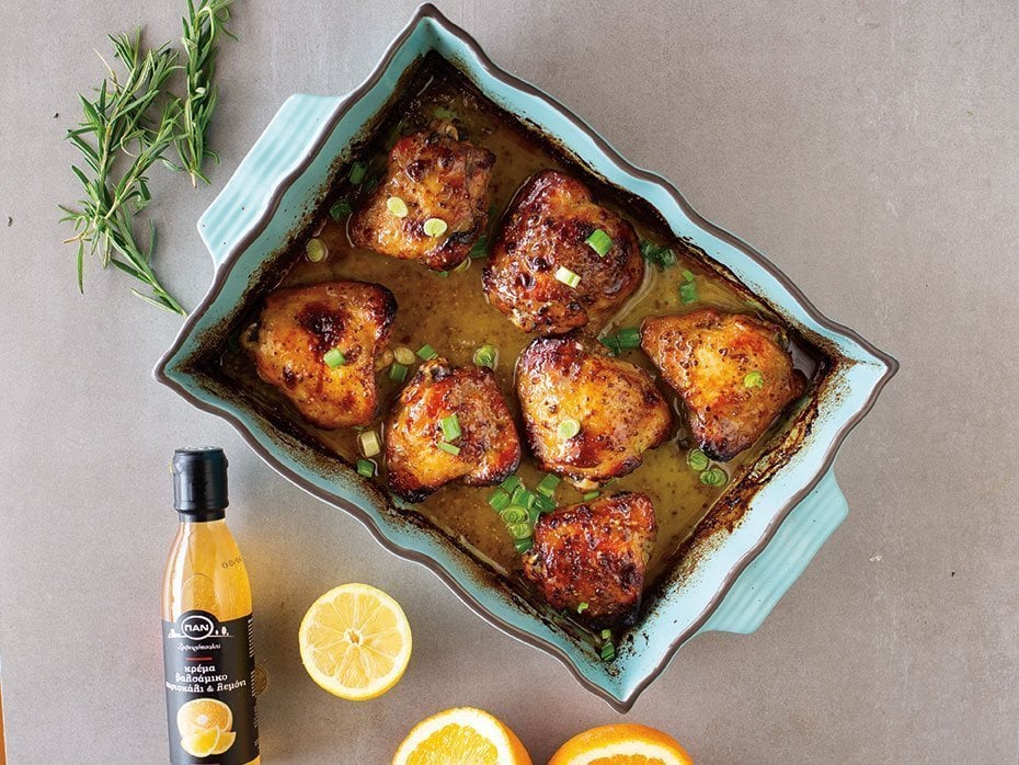 Κοτόπουλο με κρέμα βαλσάμικο, πορτοκάλι και λεμονάτη γεύση