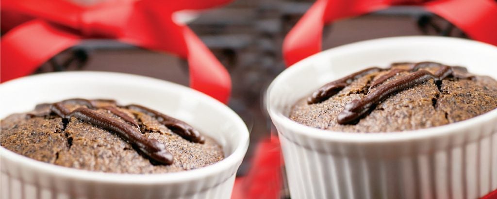 Ντύνετε με αντικολλητική λαδόκολλα τον πάτο και βουτυρώνετε 6 ατομικά σκεύη για σουφλέ από πυρίμαχη πορσελάνη (χωρητικότητας περίπου ½ φλ.).