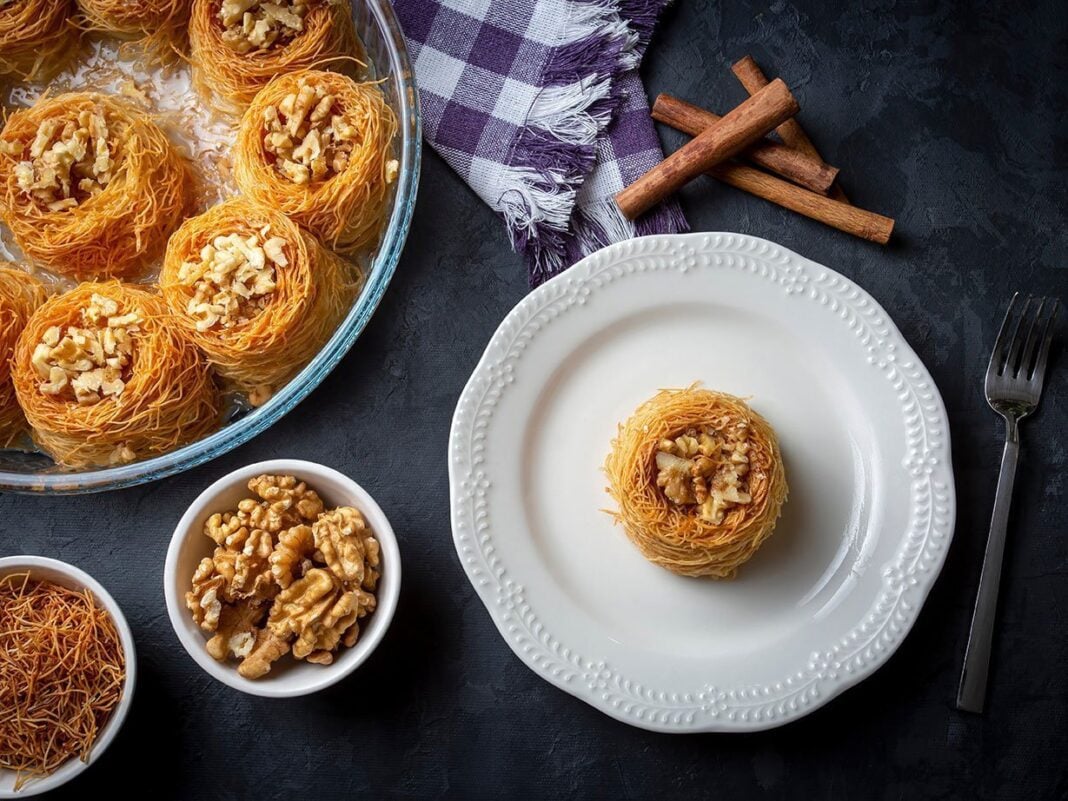 3. Με το πινέλο ραντίζεται με λάδι το κανταΐφι που τοποθετήσατε μπροστά σας.