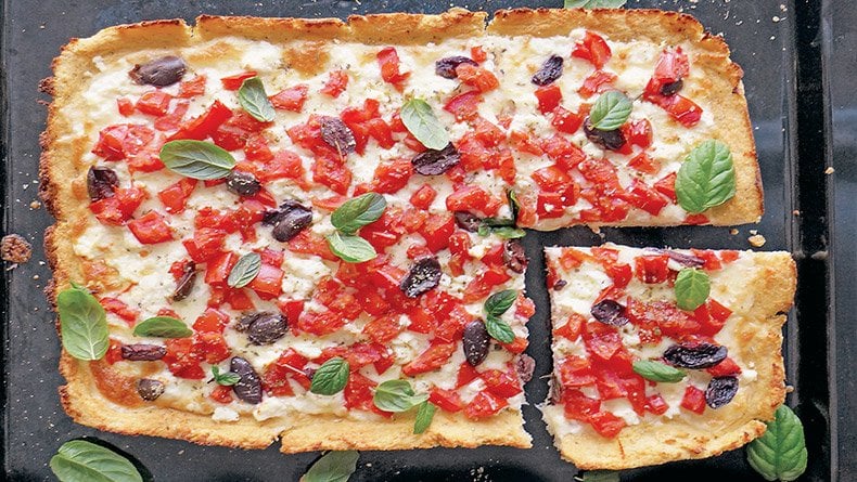 Υπάρχει πίτσα λάιτ; Μπορεί όχι, αλλά σίγουρα υπάρχει μια πιο ελαφριά βερσιόν και αυτή είναι αν αντικαταστήσετε το ψωμί με κουνουπίδι. Ακούγεται κάπως σουρεάλ, το ξέρω, όμως αν συνδυάσετε το κουνουπίδι με αβγά και τυρί θα δημιουργήσετε μια βάση για πίτσα που ούτε τα παιδιά δεν θα καταλάβουν ότι κάτι άλλαξε. Στη δική μου «πίτσα» έβαλα ντομάτες, ελιές και φέτα. Μπορείτε όμως, να βάλετε ό,τι άλλο γουστάρετε όπως χαμ, μπέικον, πιπεριές κλπ.