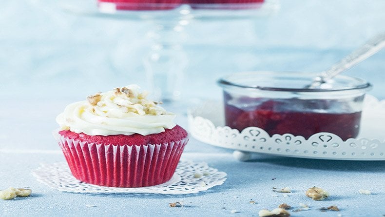 Red Velvet Cupcakes με επικάλυψη λευκής σοκολάτας