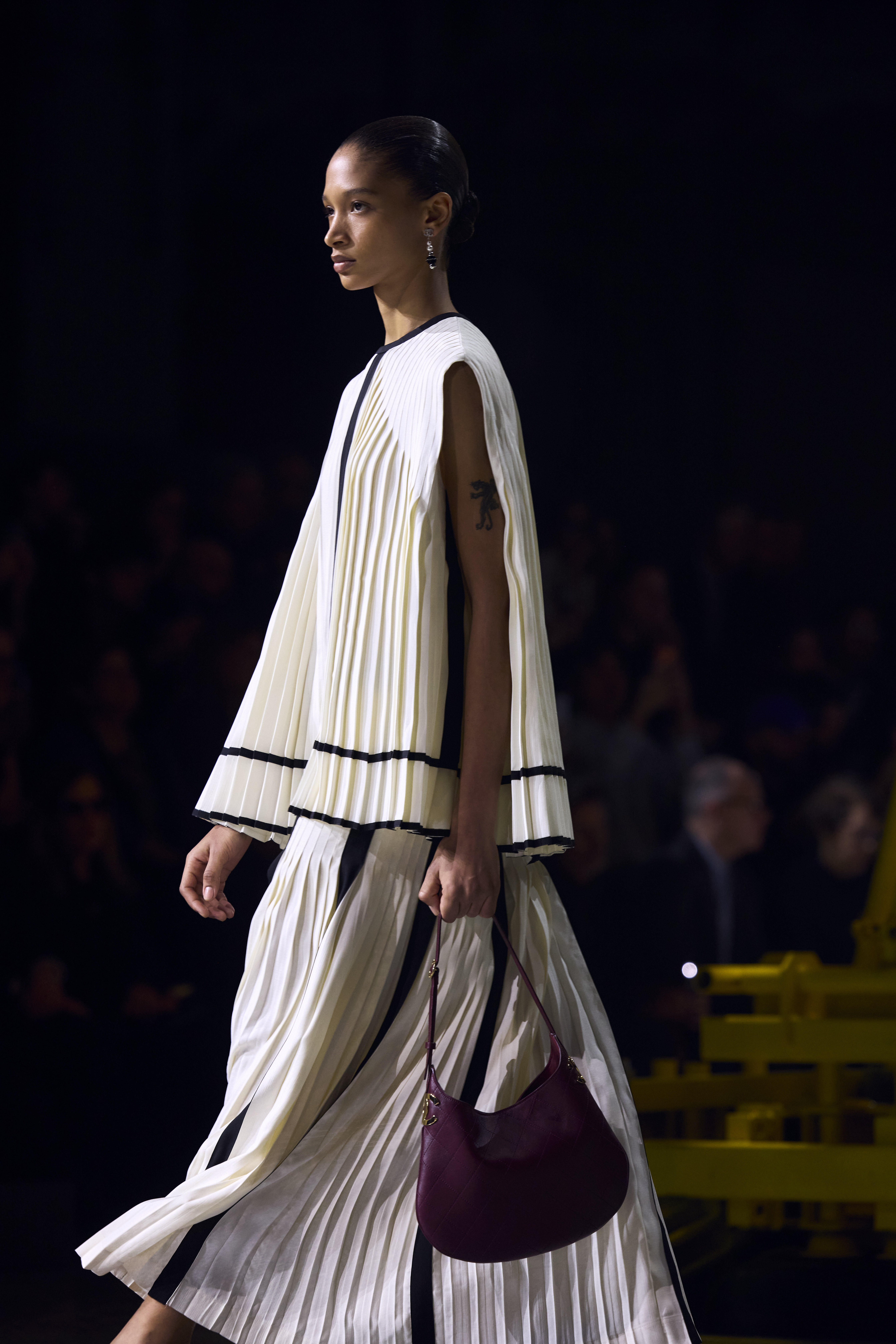 Οι μπότες, με τη χαρακτηριστική cap-toe μύτη, μοιάζουν σχεδόν σαν «δεύτερο δέρμα» χάρη στα απαλά δέρματα σε παστέλ αποχρώσεις. Την ίδια στιγμή, οι τσάντες κινούνται από το πρακτικό έως το παιχνιδιάρικο: από τη σουέτ flap bag που εξελίσσεται σε νέο κλασικό κομμάτι, μέχρι τη νέα “kinkinetic” lock bag και την εντυπωσιακή minaudière σε σχήμα ροδιού, με ιριδίζον σμάλτο.