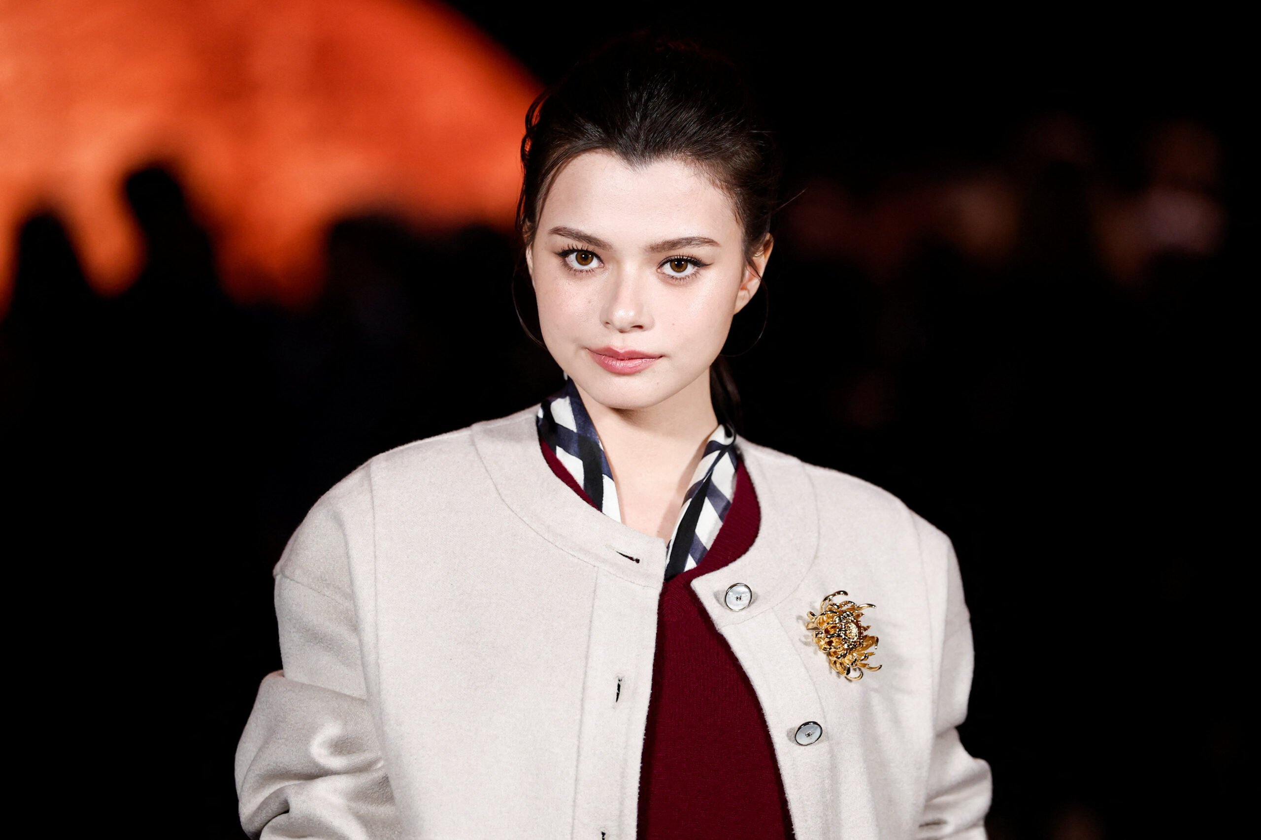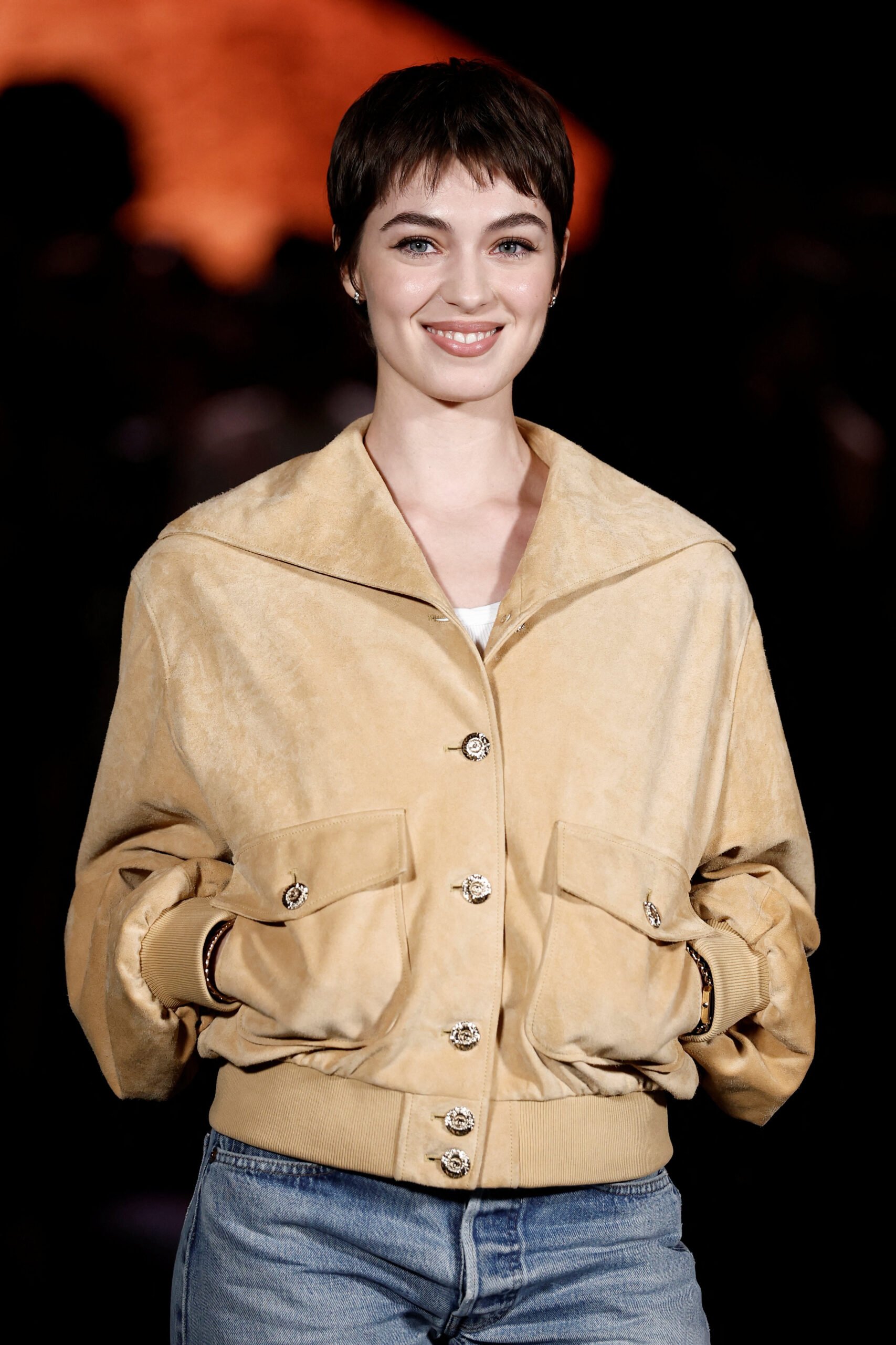 Η Anamaria Vartolomei με suede jacket jacket και τζιν παντελόνι.