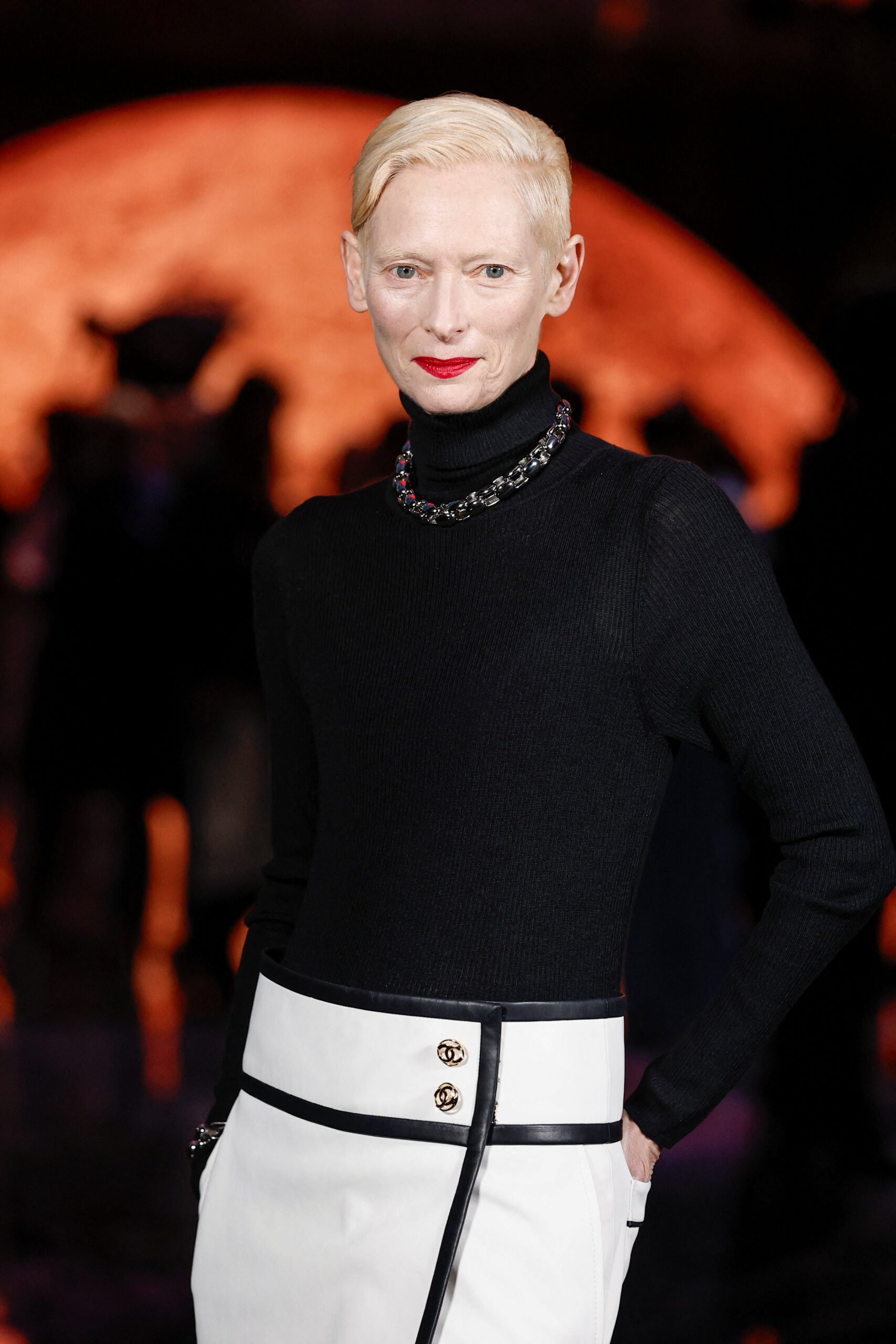 Η Tilda Swinton με υπέροχη φούστα και ζιβάγκο που συνδύασε με necklace του οίκου Chanel!