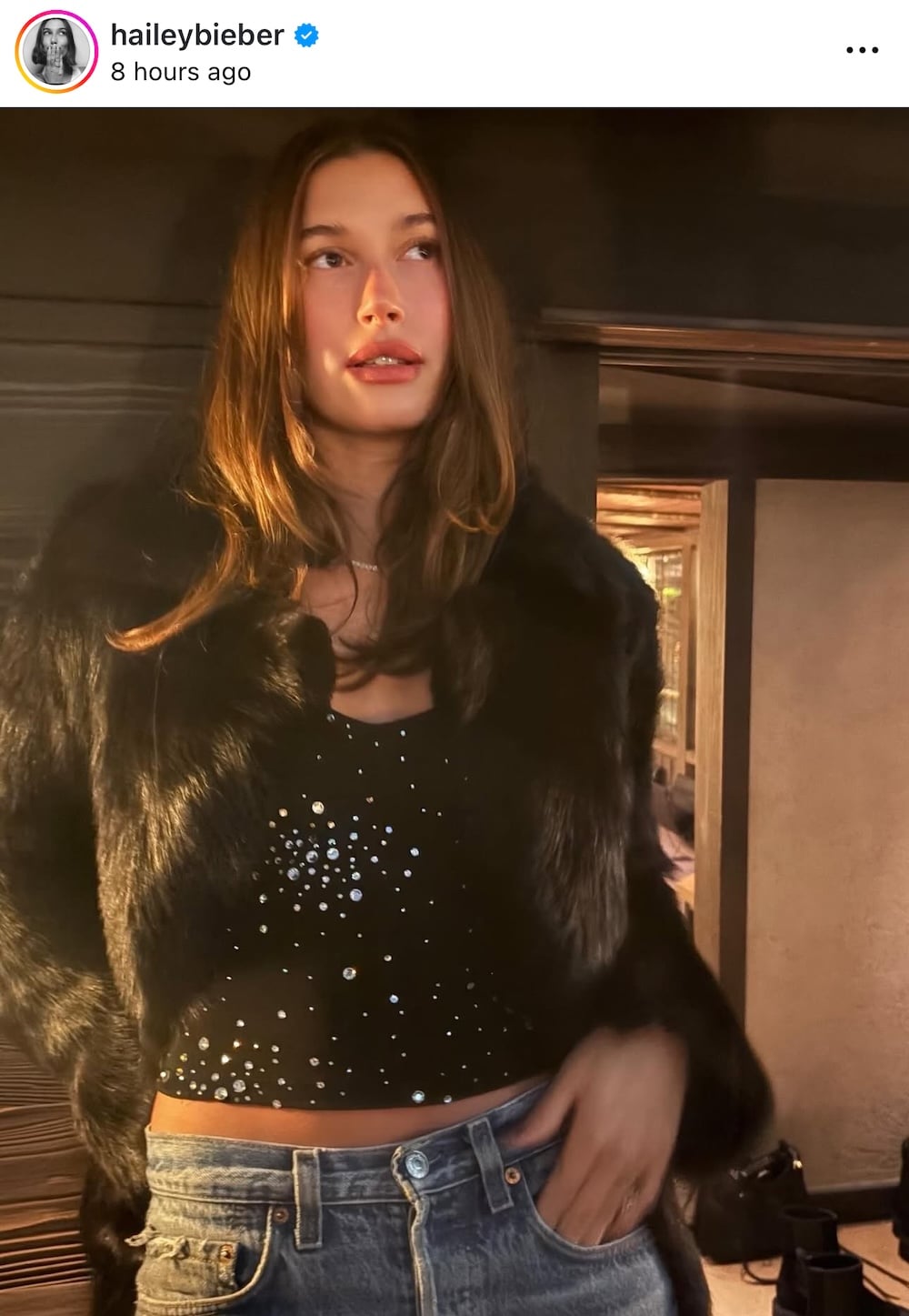 - Η Χέιλι Μπίμπερ προσφέρει έμπνευση για γιορτινές εμφανίσεις με βασικά κομμάτια και έντονα αξεσουάρ, όπως μαύρη οικολογική γούνα και animal print.