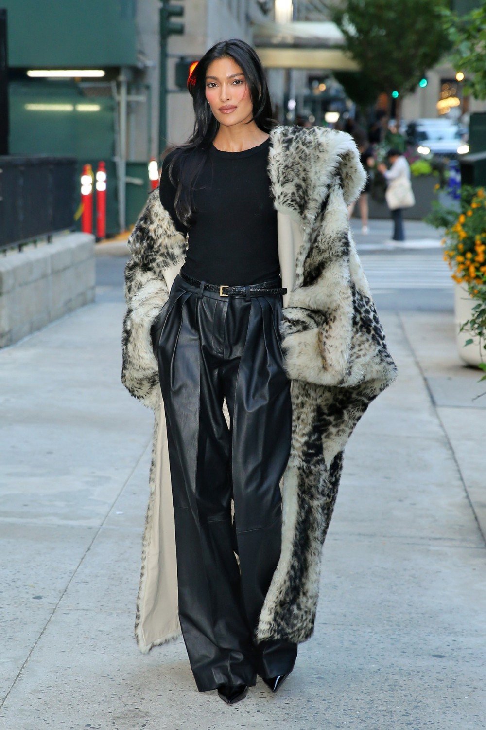 Συνδυάζεται άψογα με oversized blazers, chunky knits ή ακόμα και με silk blouses, δημιουργώντας αντιθέσεις ανάμεσα σε σκληρές και απαλές υφές. Τα χρώματα ξεφεύγουν από το κλασικό μαύρο: το deep burgundy, το σοκολατί και οι creamy nude τόνοι δίνουν μια ανανεωμένη, refined διάσταση, ενώ οι glossy ή waxed υφές προσθέτουν τη δόση rock-chic πολυτέλειας.