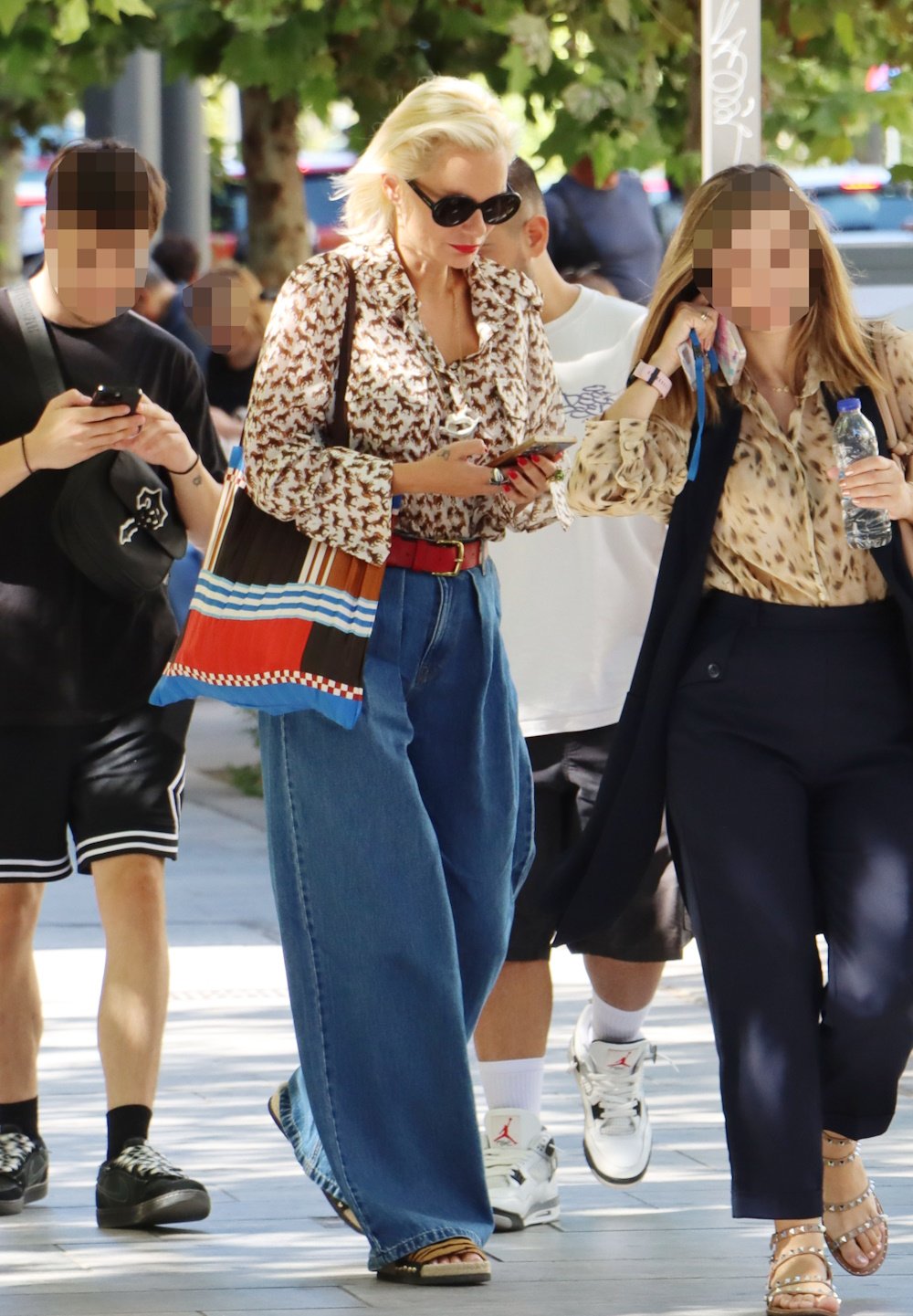 Ο φωτογραφικός φακός την απαθανάτισε πρόσφατα ντυμένη casual στο κέντρο της Αθήνας. Έχοντας ως κεντρικό στοιχείο του outfit της ένα ψηλόμεσο blue wide leg τζιν σε loose γραμμή με όγκο, άρχισε να ολοκληρώνει τον καμβά της συνδυάζοντας prints με θάρρος.