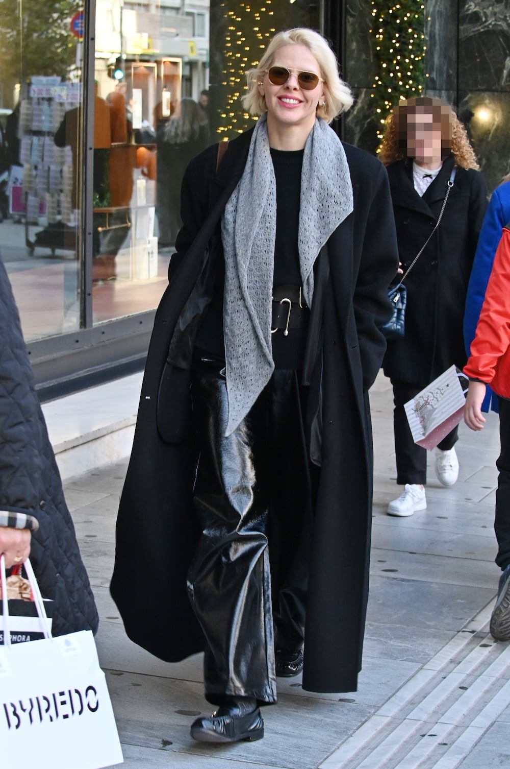 Τόνια Σωτηροπούλου: Κομψή παρουσία με μαύρη καπαρντίνα στην καρδιά της Αθήνας