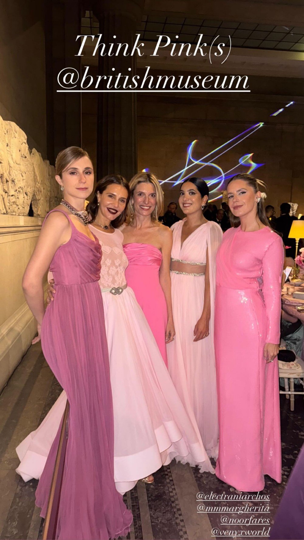 - Το θέμα της βραδιάς ήταν το «ροζ», εμπνευσμένο από την έκθεση «Αρχαία Ινδία: ζωντανές παραδόσεις», προβάλλοντας το Λονδίνο ως πολιτιστική πρωτεύουσα.
