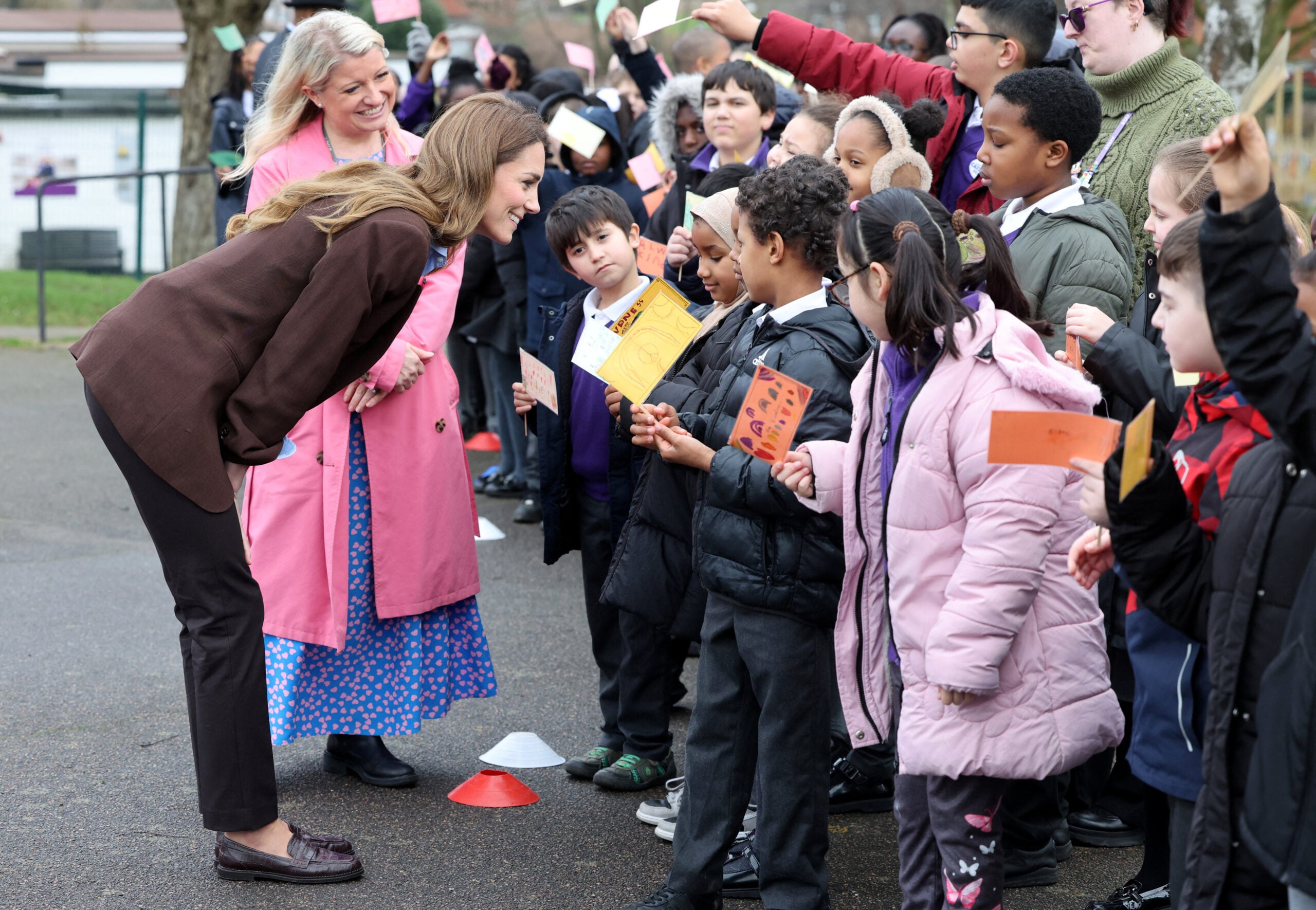 Η Catherine, Princess of Wales το γνωρίζει καλά. Σε πρόσφατη επίσκεψή της στο Castle Hill Academy στο Κρόιντον, επέλεξε ένα look πιο χαλαρό από τα συνηθισμένα της, χωρίς να χάνει ίχνος κομψότητας. Πιστή στη ζεστή καφέ παλέτα που αγαπά τελευταία, συνδύασε μπλε πουκάμισο με ανασηκωμένα μανίκια, καφέ σακάκι από τον Petar Petrov και cropped παντελόνι στην ίδια απόχρωση.