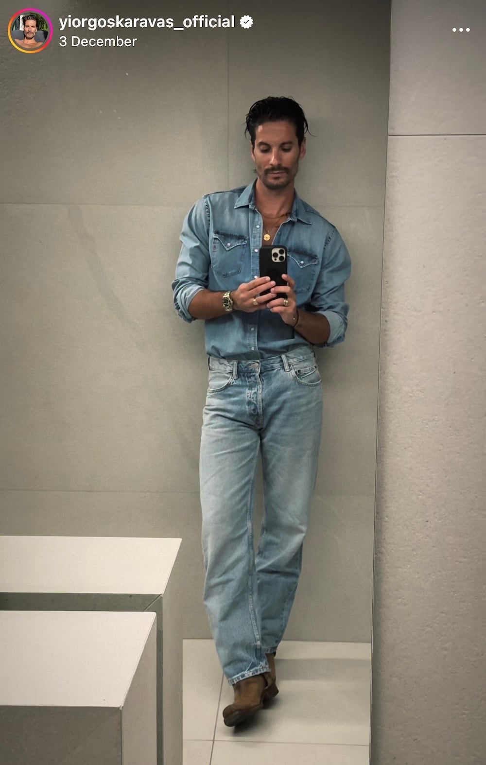 Το denim jacket είναι ένα ρούχο που δεν περισσεύει ποτέ. Διαθέσιμο σε διαφορετικά cuts, χρώματα και επεξεργασίες, λειτουργεί ως genderless δώρο που αγαπούν όλες οι γενιές. Tight ή oversized, casual ή πιο statement, προσαρμόζεται σε κάθε στιλ. Ο Γιώργος Καράβας το επιλέγει συχνά τόσο για everyday walks όσο και για πιο night outs .