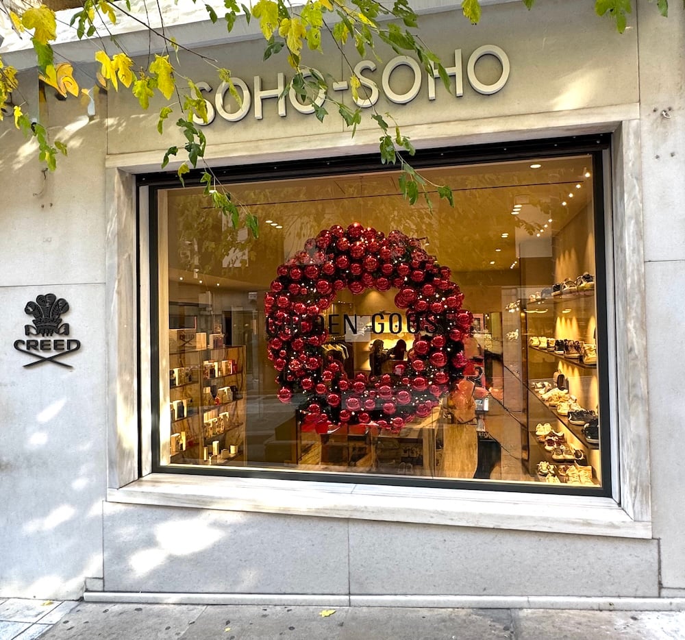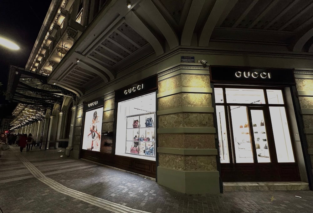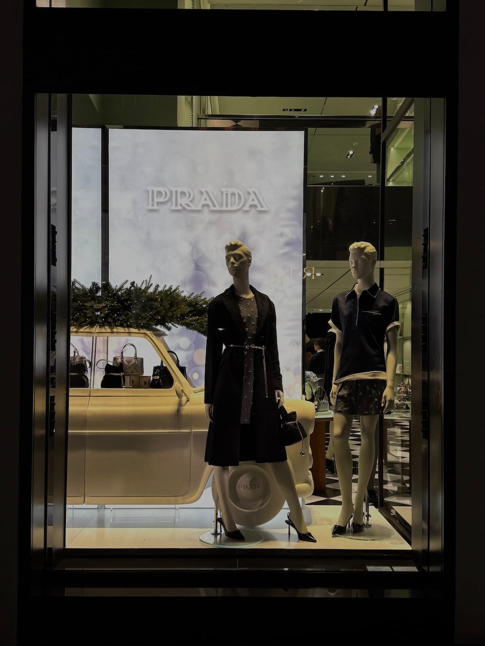 Οι μεγάλες μπουτίκ στέκονται εκεί σαν σταθερά καρέ σε μια ταινία. Gucci, Chanel, Dior, Prada, Louis Vuitton. Δεν χρειάζεται να μπεις. Αρκεί να περάσεις. Οι βιτρίνες λειτουργούν σαν ήσυχες αφηγήσεις, σαν εικόνες που δεν ζητούν τίποτα από εσένα, παρά μόνο λίγη προσοχή. Κάθε βιτρίνα είναι μια μικρή παύση στο περπάτημα. Όχι για να σταθείς υποχρεωτικά, αλλά για να επιβραδύνεις. Να δεις το φως, το styling, την πρόθεση. Η μόδα εδώ δεν φωνάζε, αλλά υπάρχει.