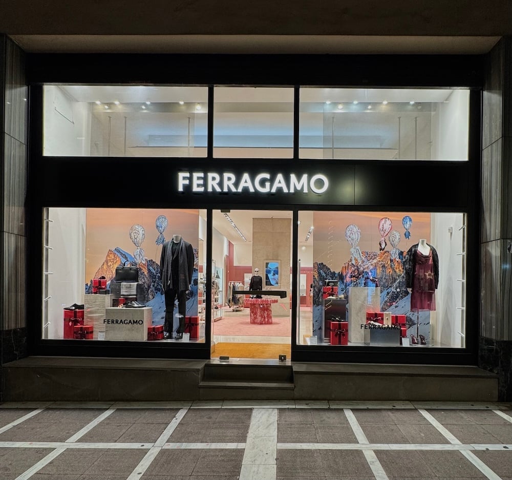 Λίγο πιο πέρα, το ντύσιμο αποκτά πιο απτή, καθημερινή διάσταση, χωρίς να χάνει τη σχέση του με τη μόδα. Η Kalogirou λειτουργεί σαν σταθερό σημείο αναφοράς, όχι σαν στάση της στιγμής, αλλά σαν κομμάτι της μνήμης της πόλης. Δίπλα του, οίκοι όπως ο Ferragamo, τα Tod’s και η Hogan κινούνται με άνεση ανάμεσα στο ρούχο, το παπούτσι και το αξεσουάρ, συνθέτοντας μια εικόνα που αφορά την πραγματική ζωή, όχι μόνο τη βιτρίνα. Ο Jimmy Choo φέρνει τον πιο βραδινό, εορταστικό τόνο, ενώ η Chloé προσθέτει έναν πιο απαλό, θηλυκό ρυθμό στο σύνολο. Δεν πρόκειται για κατηγορίες. Πρόκειται για διαφορετικές διαθέσεις, που συνυπάρχουν στην ίδια βόλτα.