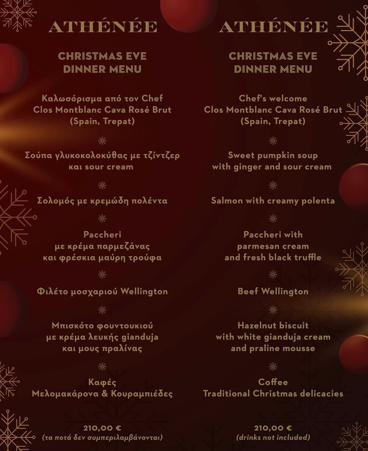Την περίοδο των γιορτών, αποκτά μια ακόμη διάσταση. Τα χριστουγεννιάτικα και πρωτοχρονιάτικα ρεβεγιόν του δεν είναι απλώς δείπνα. Είναι βραδιές συνάντησης, με μουσική, χαμηλό φωτισμό και την αίσθηση ότι βρίσκεσαι στο σωστό σημείο της πόλης τη σωστή στιγμή.