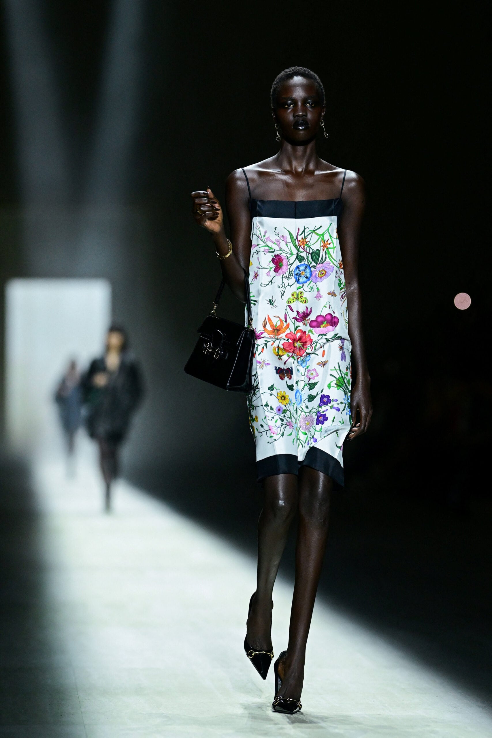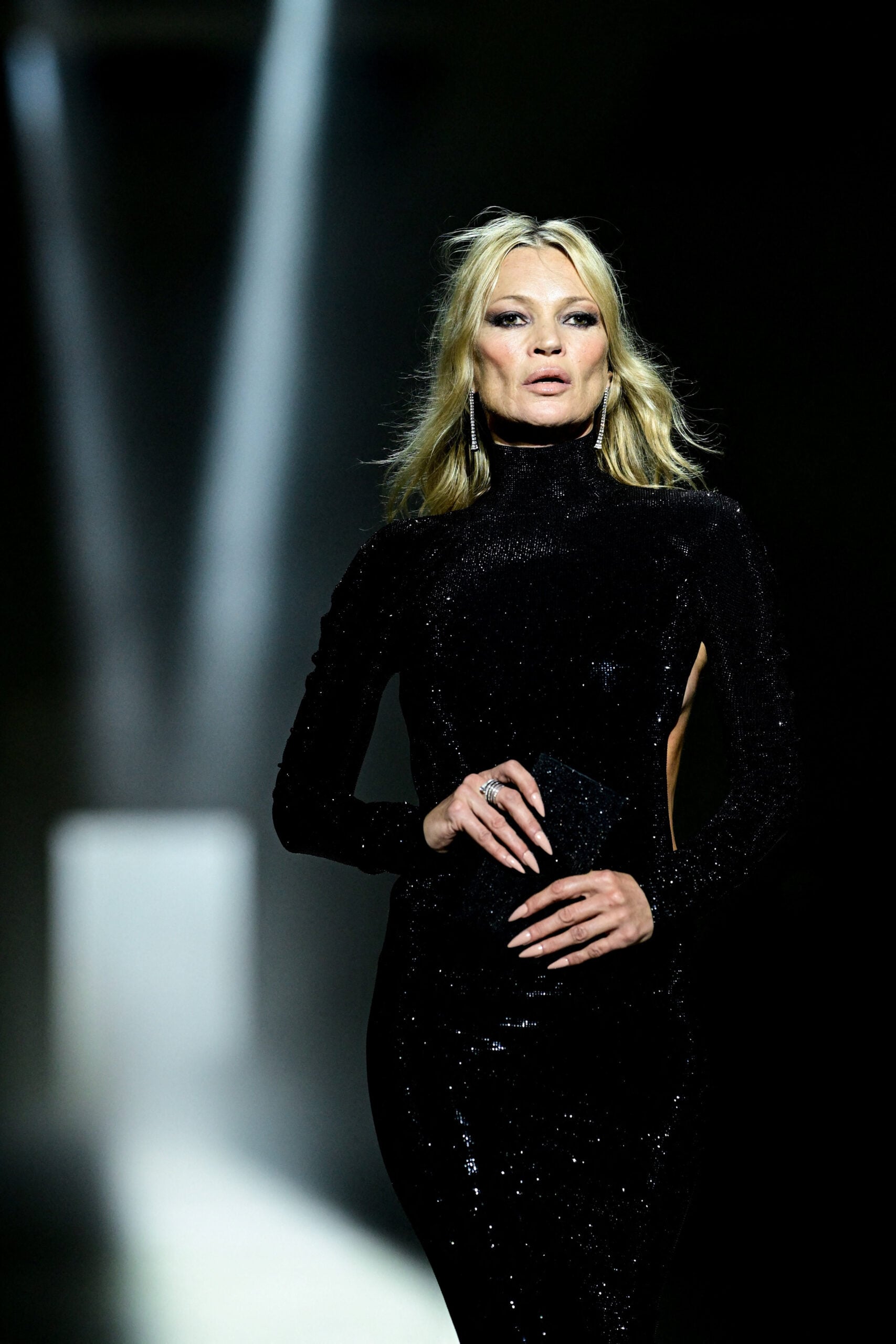 Το cast ήταν εξίσου ισχυρό με τη συλλογή. Η παρουσία της Kate Moss έδωσε στη βραδιά μια σχεδόν μυθική διάσταση. Το supermodel έκλεισε το show με ένα backless φόρεμα που αποκάλυπτε ένα ενσωματωμένο GG στρινγκ από λευκόχρυσο και διαμάντια — μια σαφής αναφορά στη θρυλική αισθητική της Gucci των 90s.