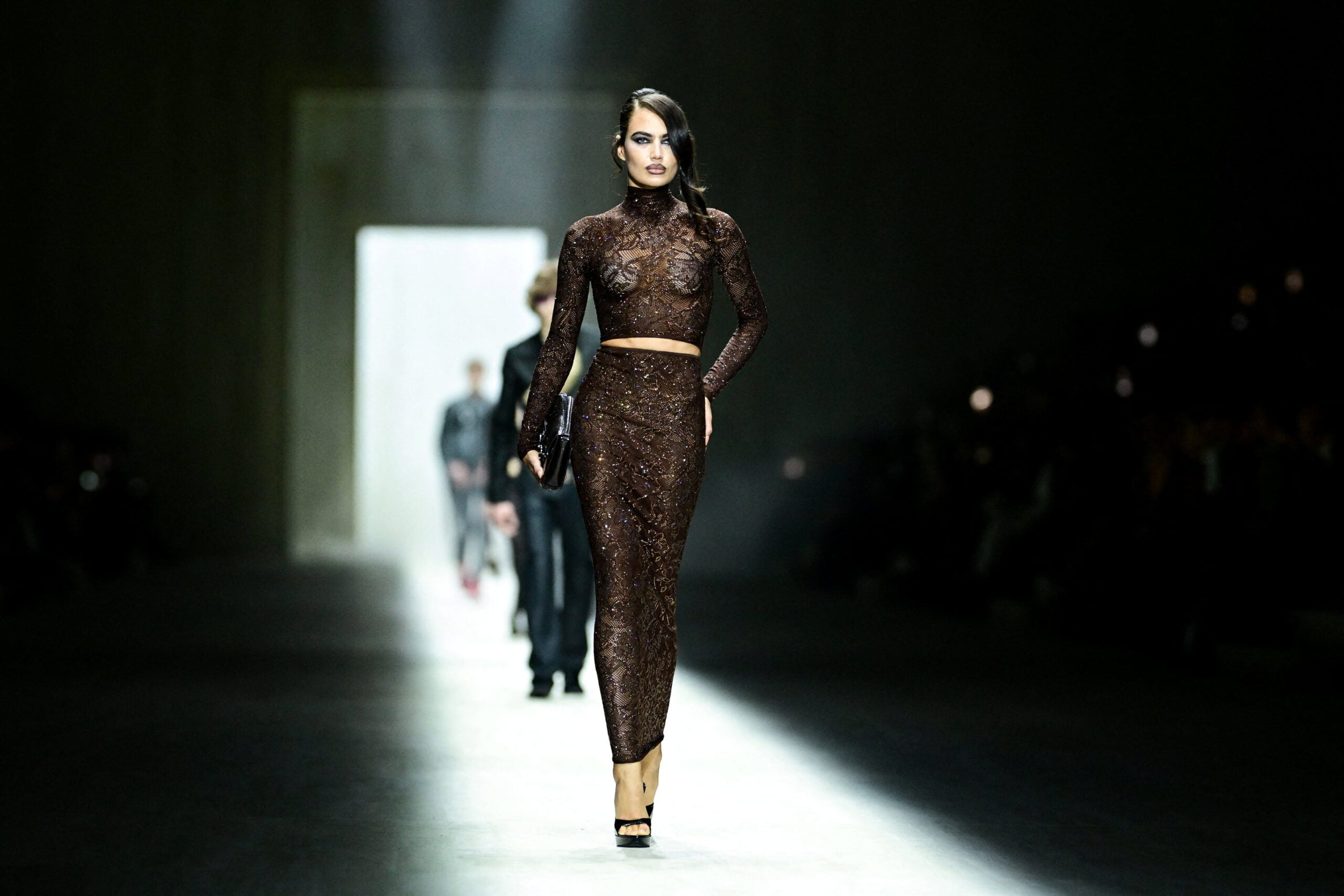 Ο Demna έπαιξε με την έννοια της πολυτέλειας, παρουσιάζοντας κομμάτια που φαινομενικά αμφισβητούν την αξία τους: φορέματα που έμοιαζαν με καλσόν, σιλουέτες που θύμιζαν εσώρουχα και υλικά που παραδοσιακά δεν θεωρούνται “luxury”. Και όμως, μέσα από αυτή την αποδόμηση, γεννήθηκε μια νέα μορφή επιθυμίας.