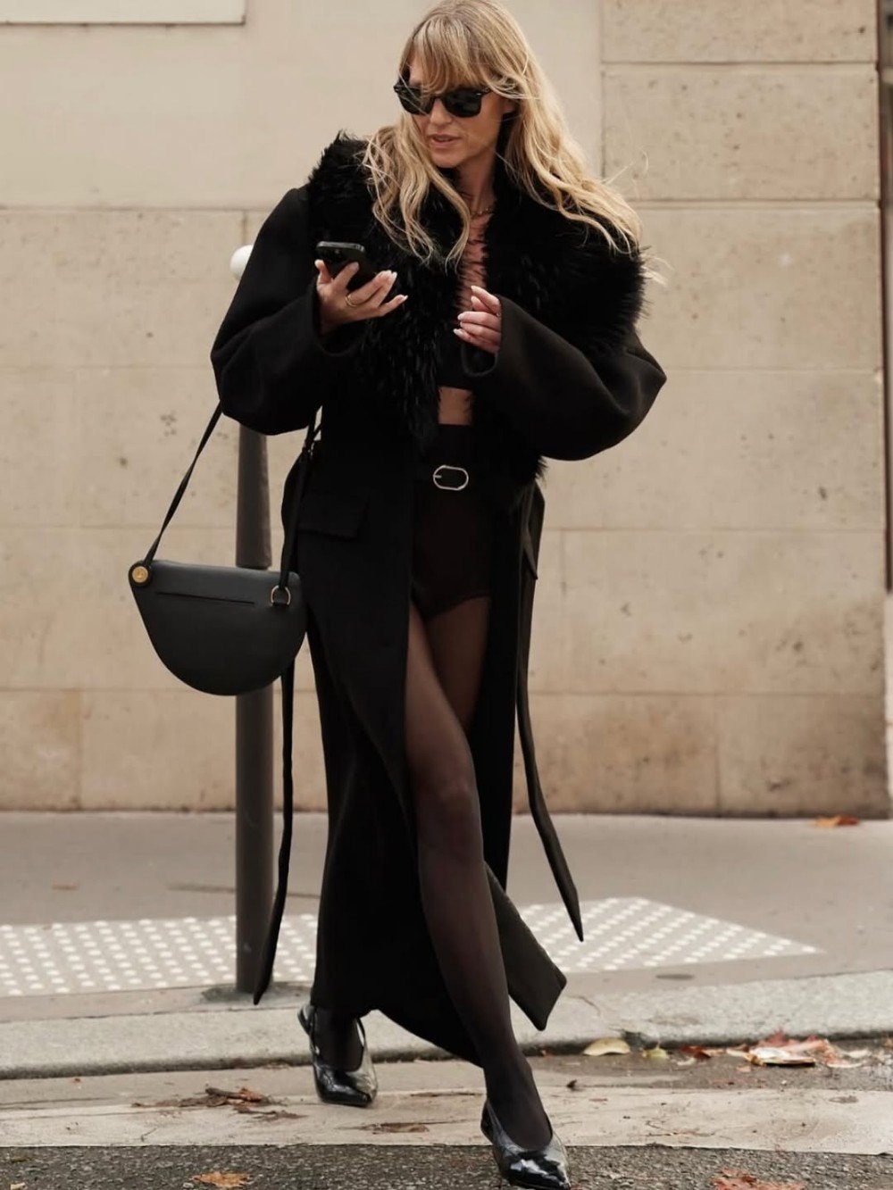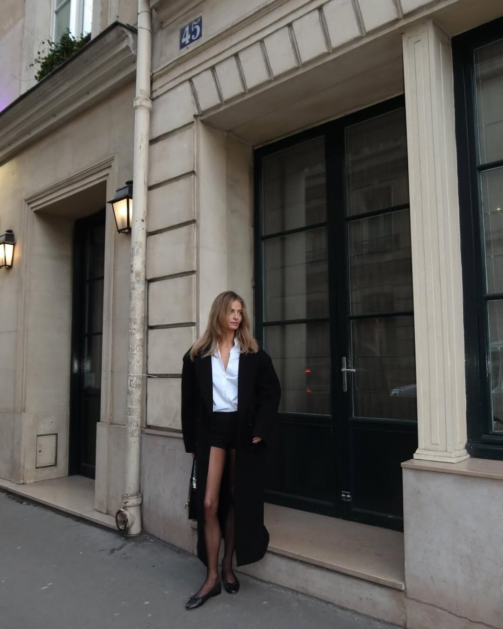 Το total black look είναι από τα αγαπημένα τους. Μαύρα hot pants με opaque καλσόν, μαύρο ζιβάγκο και ένα structured σακάκι ή δερμάτινο jacket από πάνω. Μινιμαλιστικό, σοφιστικέ, αλλά με attitude.