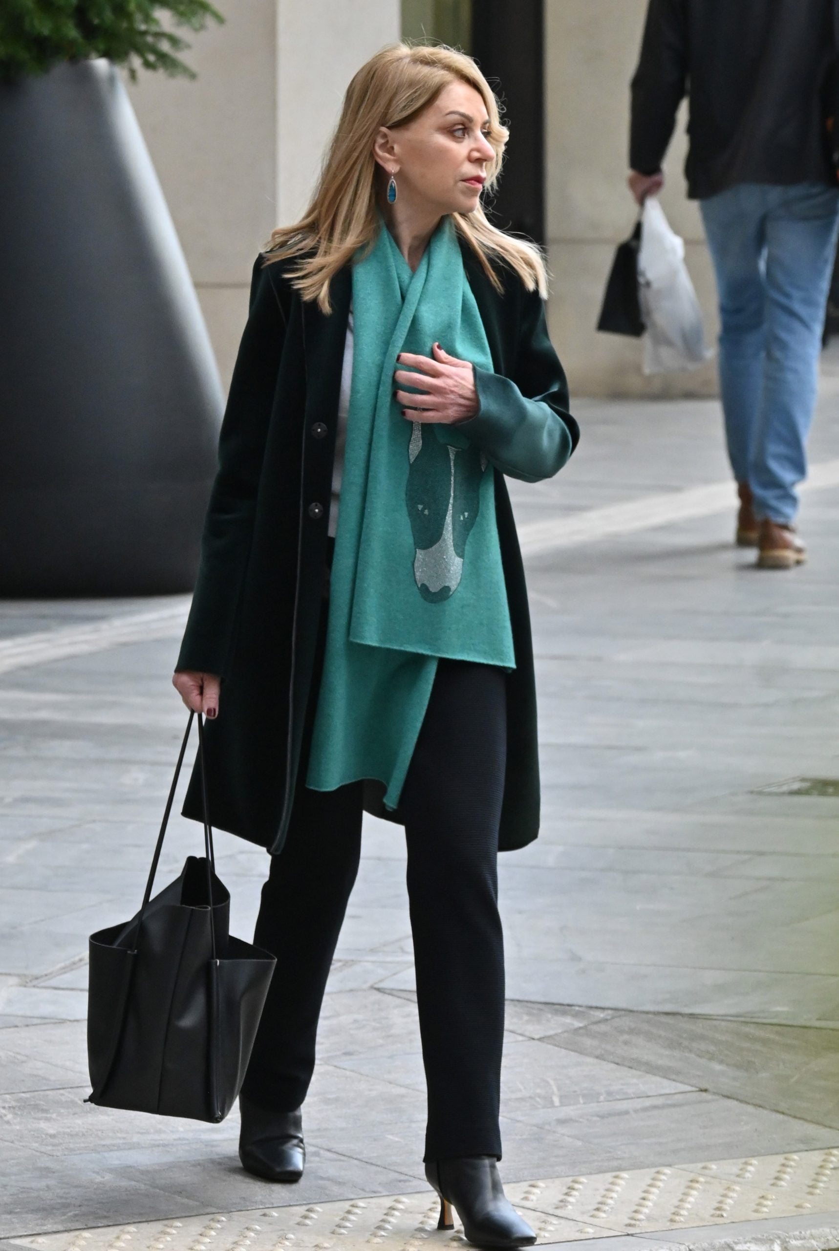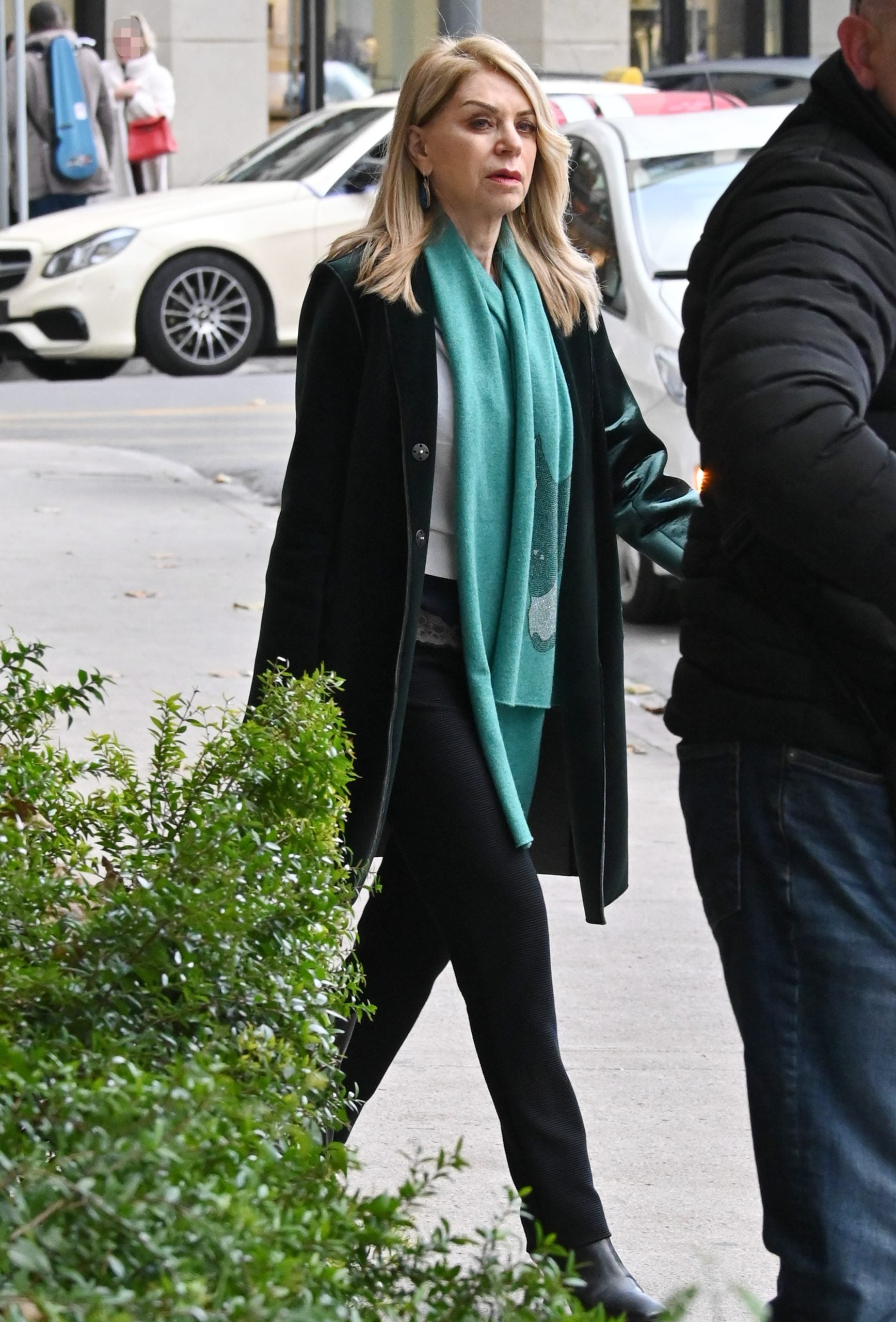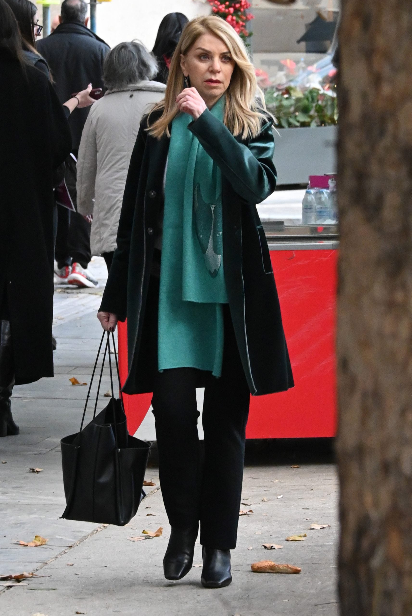 Η γνωστή δημοσιογράφος επέλεξε ένα total black σύνολο, βασισμένο σε καθαρές γραμμές και minimal αισθητική. Το μαύρο παλτό, κλασικής γραμμής συνδυάστηκε με μαύρο παντελόνι και ankle boots με χαμηλό τακούνι, δημιουργώντας ένα σύνολο ιδανικό για την καθημερινότητα στην πόλη.