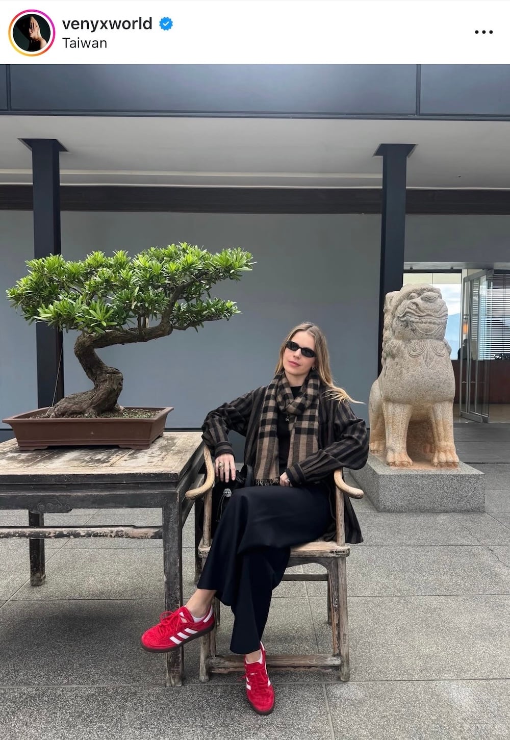 Μέσα από τον προσωπικό της λογαριασμό στο Instagram δείχνει πώς οι τάσεις της υψηλής μόδας μπορούν να μεταφραστούν σε καθημερινές και πιο προσιτές επιλογές. Συγκεκριμένα, σε ένα πρόσφατο post στον προσωπικό της λογαριασμό στο Instagram εμφανίστηκε με ένα modest, cute και άνετο σύνολο, που περιλάμβανε ένα πλεκτό πουλόβερ, ένα κασκόλ, ένα υφασμάτινο μάλλινο παντελόνι σε ίσια γραμμή και ένα ζευγάρι low-tech sneakers Adidas σε έντονο κόκκινο χρώμα.