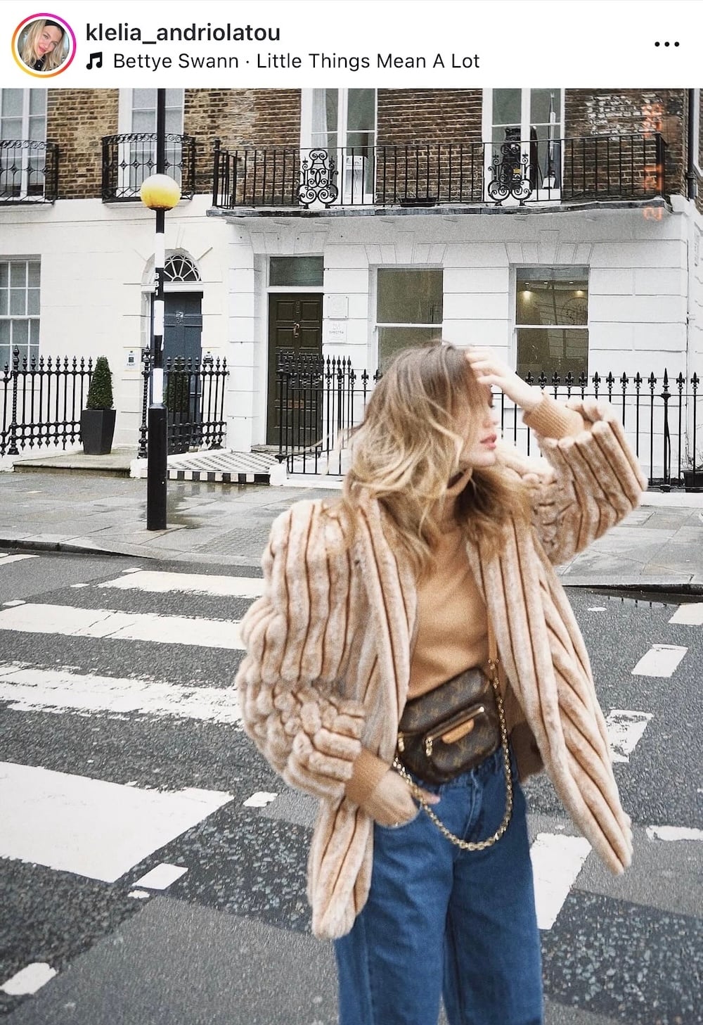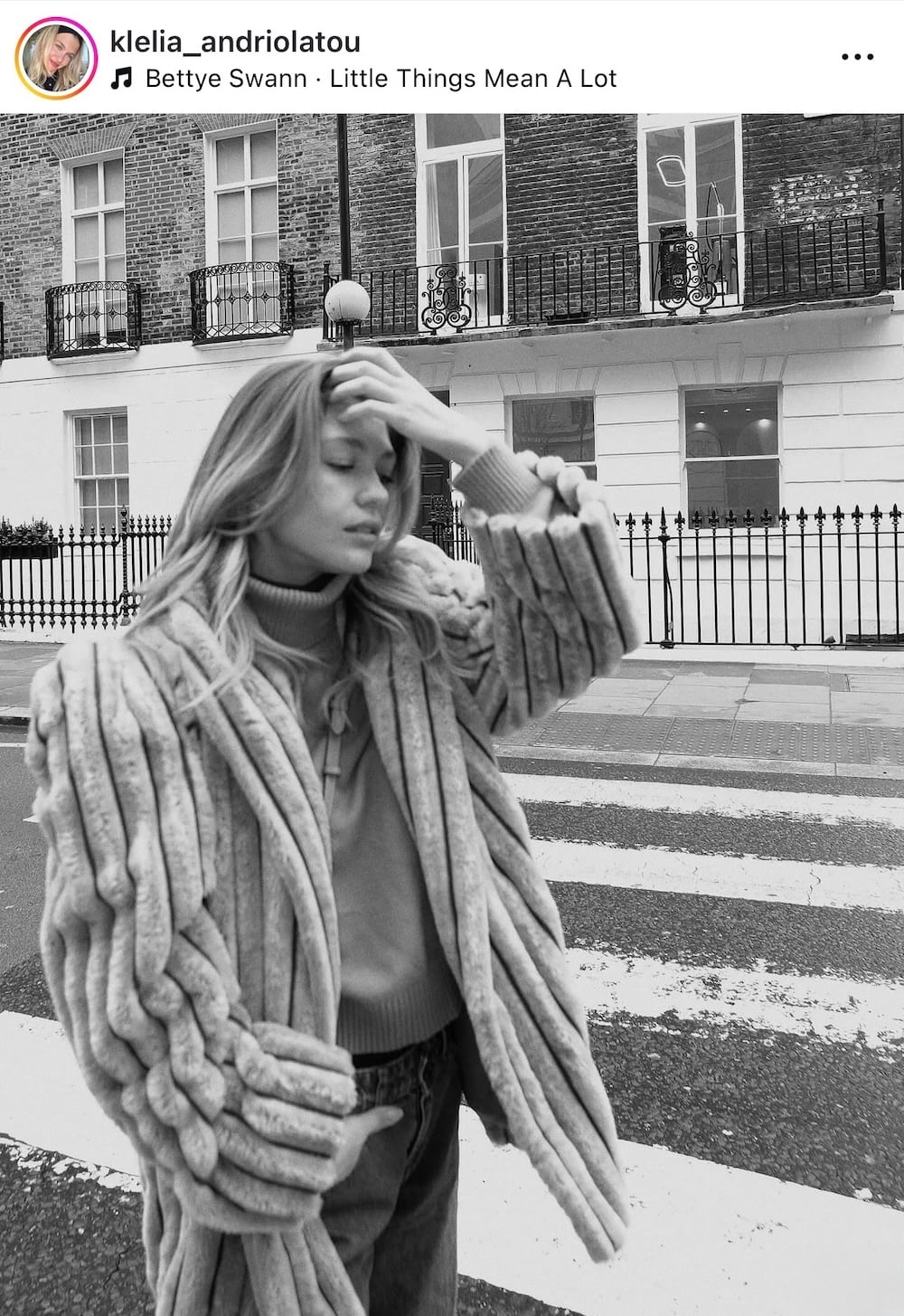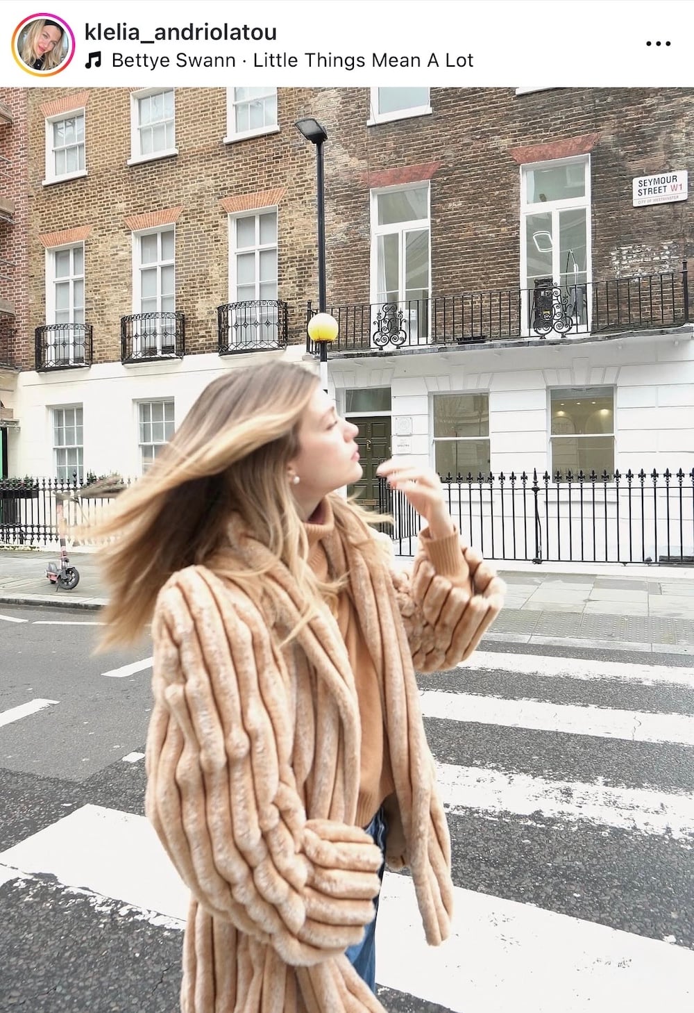 Στους δρόμους του Λονδίνου, η Κλέλια Ανδριολάτου εμφανίστηκε με ένα casual σύνολο που ήταν ιδανικό όχι μόνο για τον chilly καιρό αλλά και για το απαραίτητο περπάτημα που απαιτεί η πόλη. Το outfit αποτελούνταν από οικολογική γούνα που μιμούνταν το τσιντσιλά σε ουδέτερο χρώμα, ένα turtleneck knitwear στον ίδιο μπεζ χρωματισμό, jeans σε γραμμή κοντά στο σώμα και αθλητικά low tech sneakers, τα οποία αποτελούν must της σεζόν και ταιριάζουν στο street vibe της πόλης.
