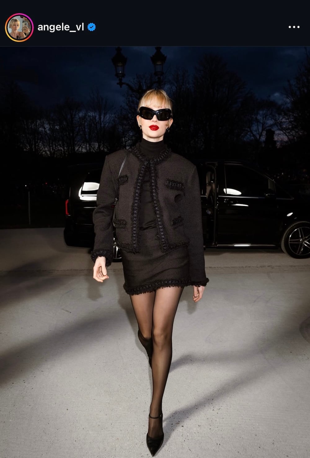 Η αίθουσα του Grand Palais στο Παρίσι, με τη χαρακτηριστική γυάλινη οροφή που λούζει το χώρο με φυσικό φως, είχε γεμίσει από το γνώριμο βουητό πριν αρχίσει η επίδειξη της Chanel. Κι όμως, όταν εμφανίστηκε η Angèle Joséphine Aimée Van Laeken, σχεδόν κανείς δεν την πρόσεξε αμέσως. Έμοιαζε να ανήκει εκεί με έναν τρόπο σχεδόν φυσικό. Το στυλ της Angèle δεν προσπαθεί να εντυπωσιάσει. Είναι κάτι πιο σπάνιο. Στην πρόσφατη εμφάνισή της σε επίδειξη του οίκου Chanel, φορούσε ένα σύνολο που θα μπορούσε να είναι η σύγχρονη εκδοχή της Parisienne. Μίνι μαύρη φούστα, κοντομάνικο ζιβάγκο και ένα κλασικό Chanel jacket με διακοσμητικές τρέσες, φορεμένο σχεδόν ανέμελα. Διάφανο μαύρο καλτσόν, μυτερές Mary Jane γόβες με ψηλό τακούνι, μεγάλα μαύρα γυαλιά και έντονο κόκκινο κραγιόν ολοκλήρωναν την εικόνα. Ένα look απλό αλλά απόλυτα αναγνωρίσιμο.
