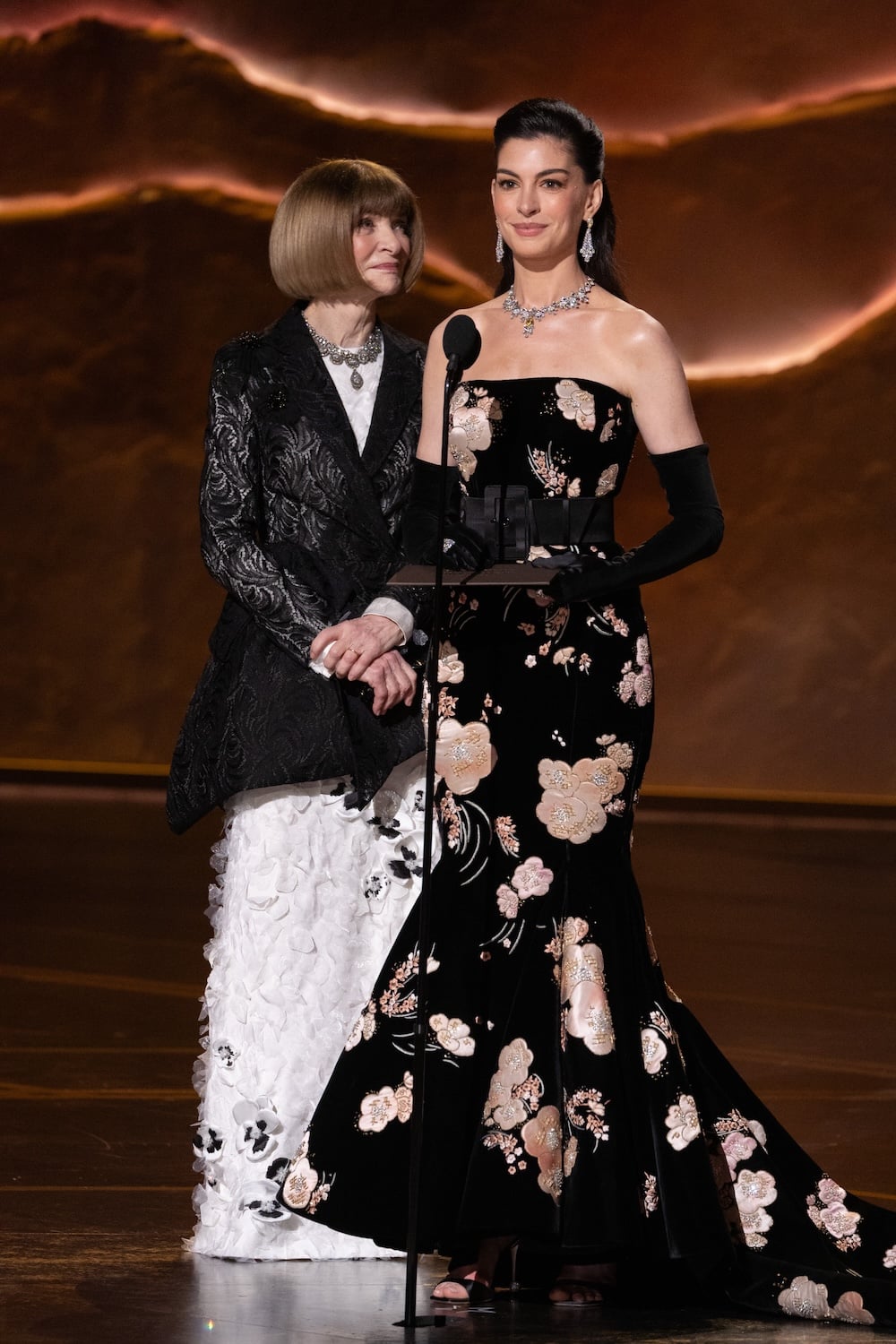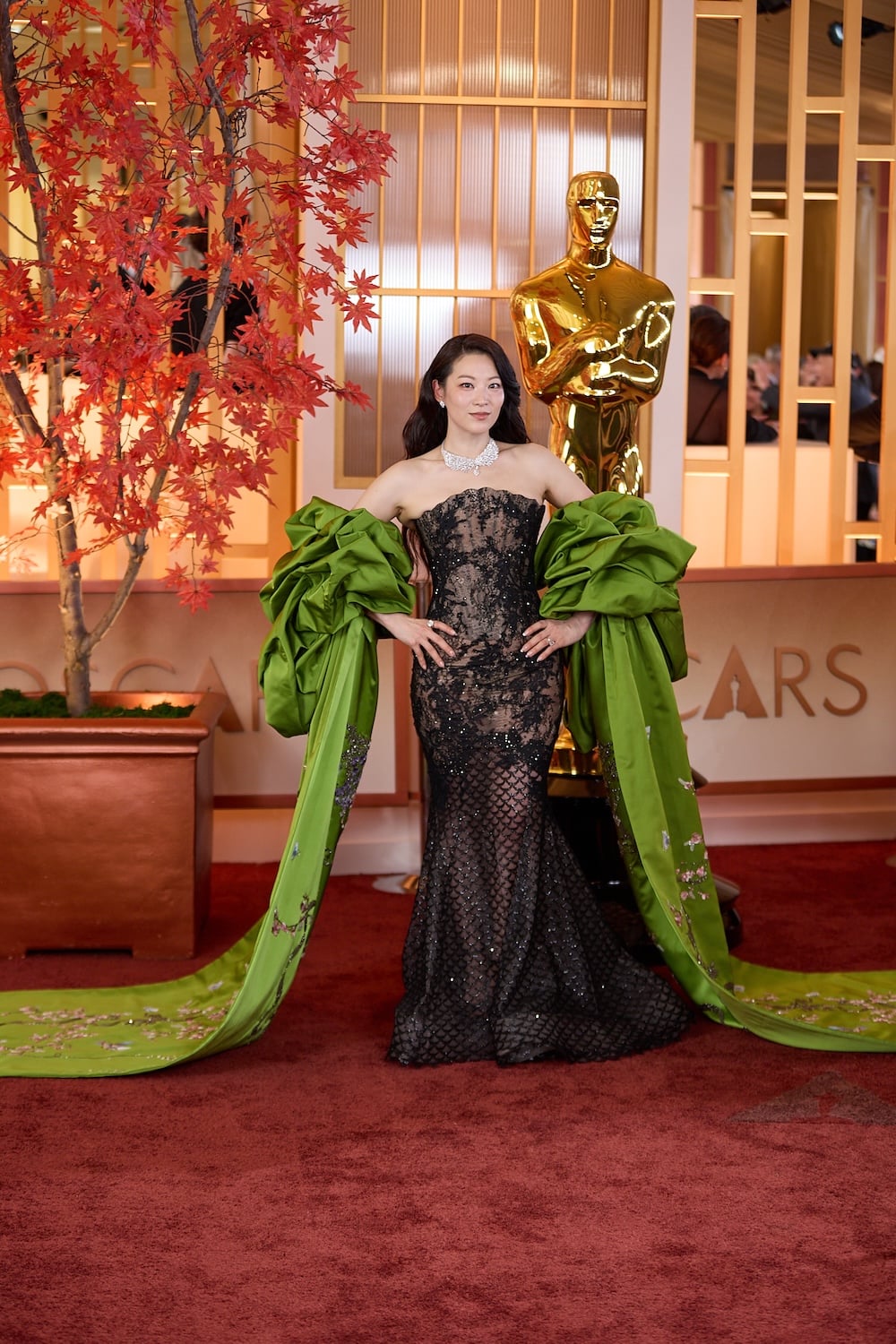 Στη σκηνή των Oscars, η Zoe Saldana, η ηθοποιός που έχει συνδέσει το όνομά της με κινηματογραφικά σύμπαντα όπως το Avatar και το Guardians of the Galaxy, εμφανίζεται με ένα φόρεμα όπου η δαντέλα λειτουργεί σαν φίλτρο πάνω στο σώμα, χωρίς καμία υπερβολή. Δίπλα της, η Arden Cho, γνωστή από το Teen Wolf και πιο πρόσφατα από το KPop Demon Hunters, όπου χάρισε τη φωνή της στην κεντρική ηρωίδα Rumi, δίνει μια πιο δραματική εκδοχή της ίδιας ιδέας, με όγκο και ένταση που θυμίζουν σχεδόν θεατρική σκηνή. Και κάπου ανάμεσα σε αυτές τις δύο τόσο διαφορετικές προσεγγίσεις, η Anna Wintour, η γυναίκα που συνεχίζει να καθορίζει τον παγκόσμιο διάλογο της μόδας σαν αρχισυντάκτρια της αμερικανικής Vogue και καλλιτεχνική διευθύντρια της Condé Nast, εμφανίζεται με ένα tailored σακάκι από δαντελένιο ύφασμα που δεν έχει τίποτα το ρομαντικό ή προφανές.