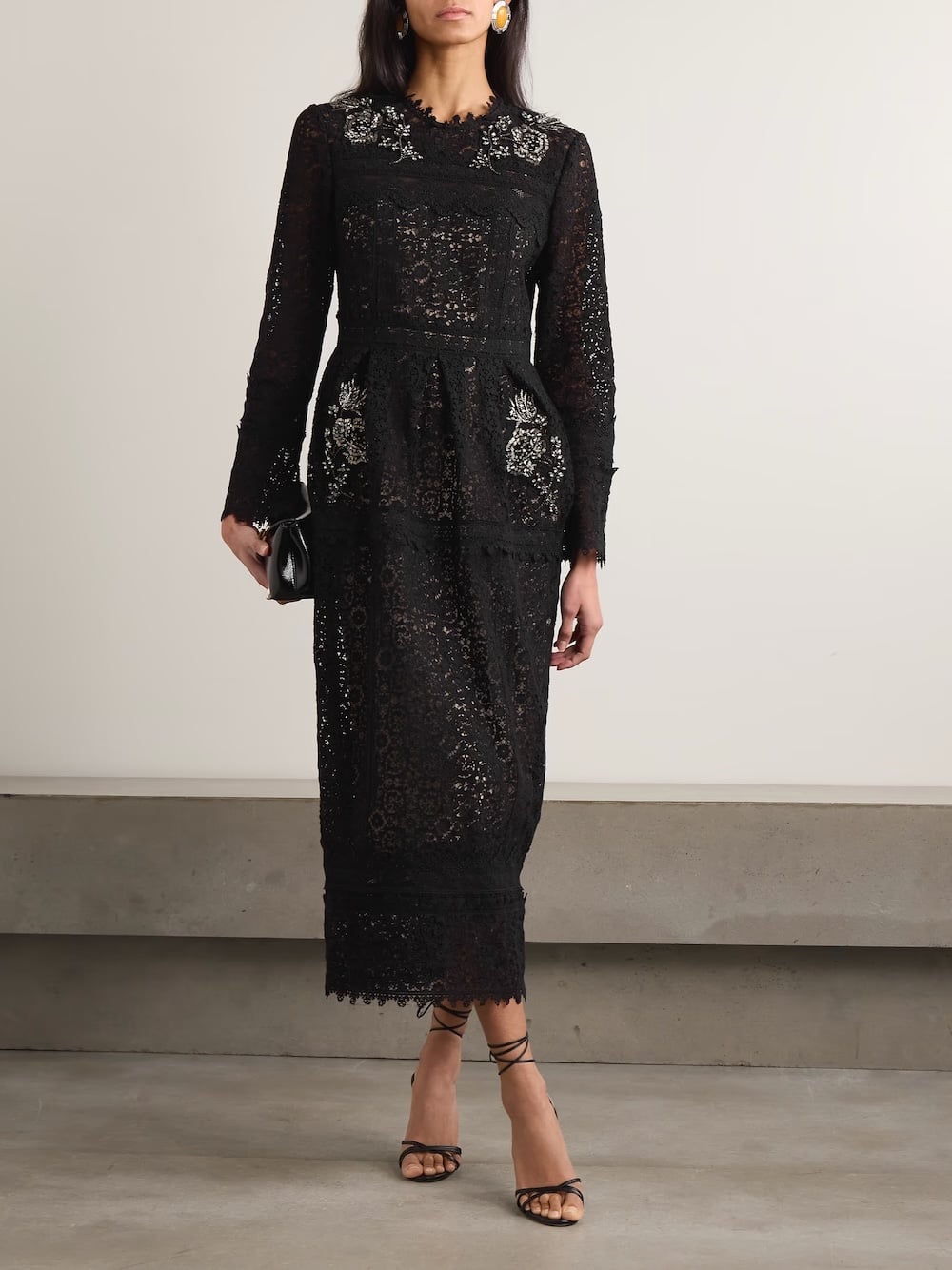 Καθαρό και αυστηρό, με τη δαντέλα να λειτουργεί σαν υπογραφή.