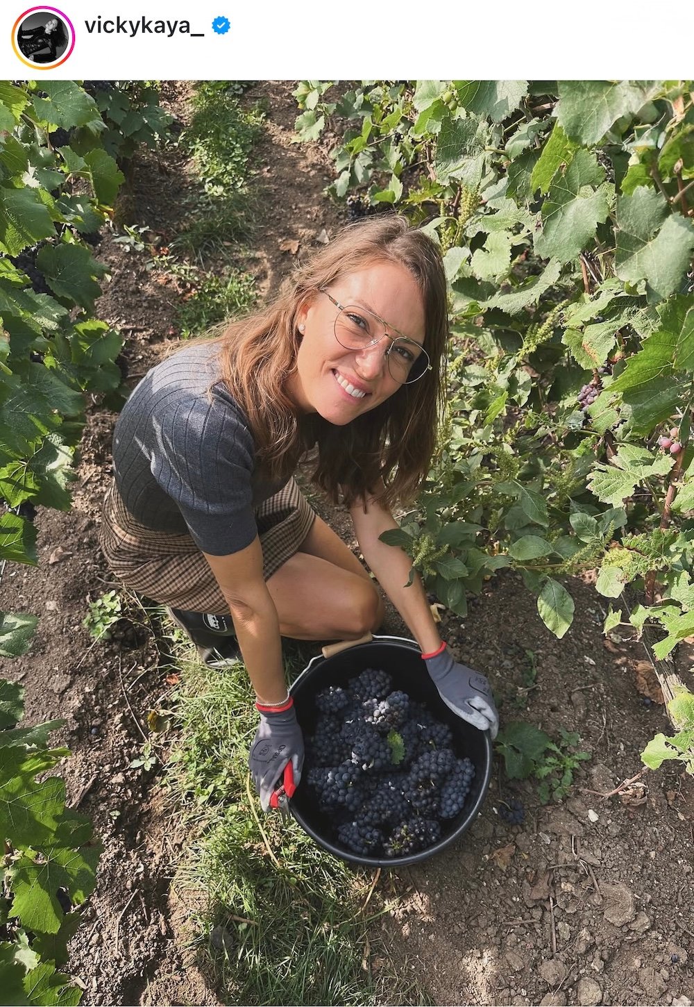Η Βίκυ Καγιά επέλεξε να φορέσει ένα ζευγάρι wellies, δηλαδή αδιάβροχες rubber μπότες, που μάλιστα της τις παρείχε το γνωστό brand, καθώς βρέθηκε στους αμπελώνες της εταιρείας. Ήταν ένας έξυπνος τρόπος να προστατεύσει τα παπούτσια της. Τα wellies είναι ιδανικά για τις βροχερές ημέρες, αλλά και για τα βρεγμένα εδάφη που μπορούν να απειλήσουν τα υποδήματα.