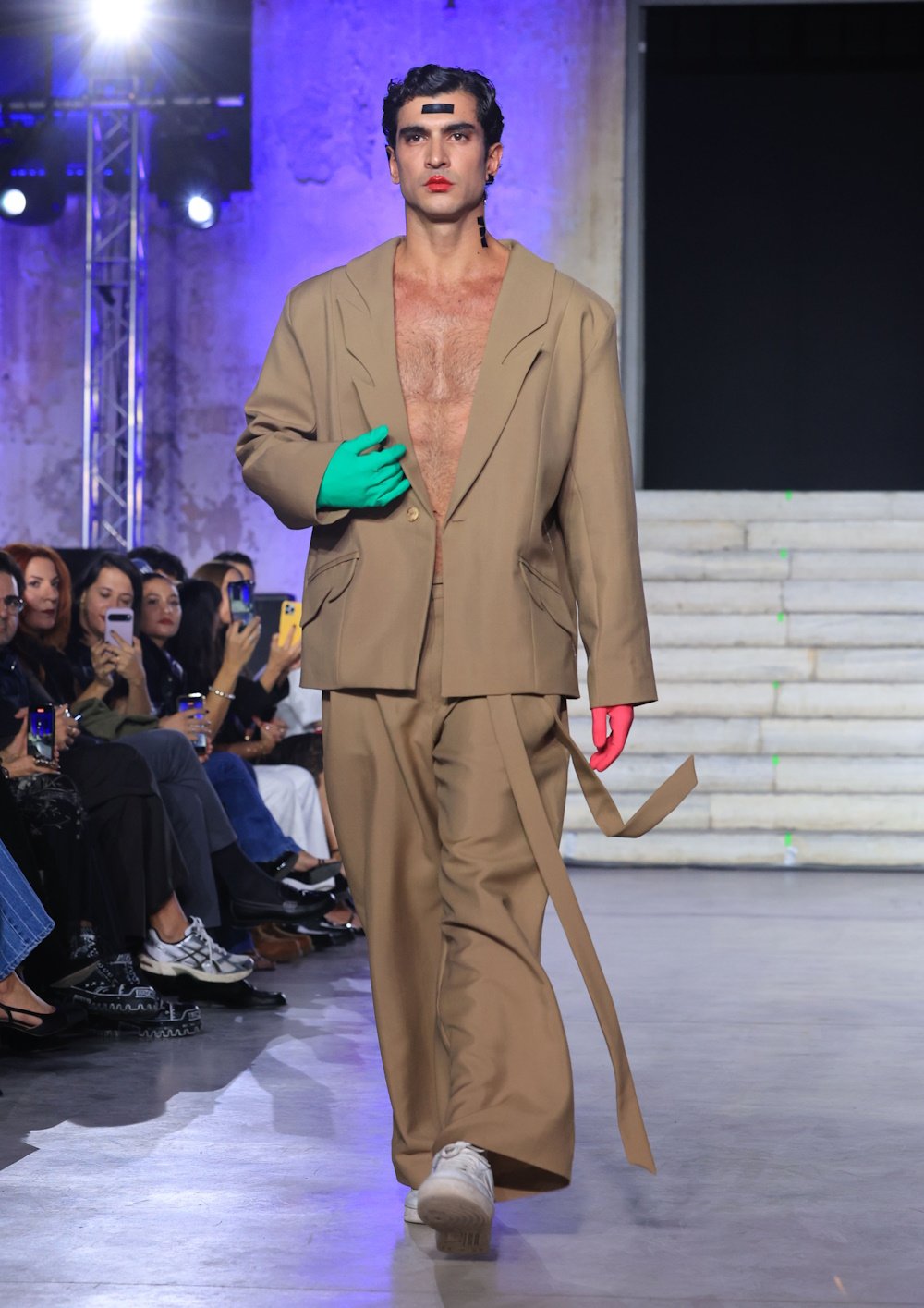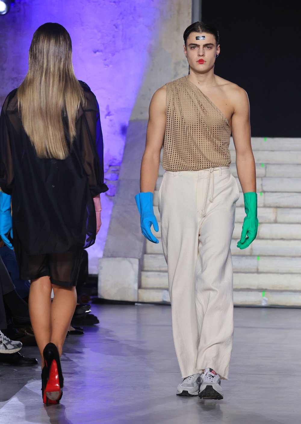 Ο εκκεντρικός και πάντα δημιουργικός σχεδιαστής παρουσίασε τη νέα του συλλογή, γεμάτη έντονα χρώματα, statement υφές και το χαρακτηριστικό του ταπεραμέντο. Στην πασαρέλα περπάτησαν αρκετά γνώριμα πρόσωπα από το φετινό GNTM, δίνοντας μια τηλεοπτική νότα στο fashion show.