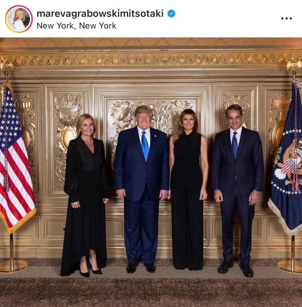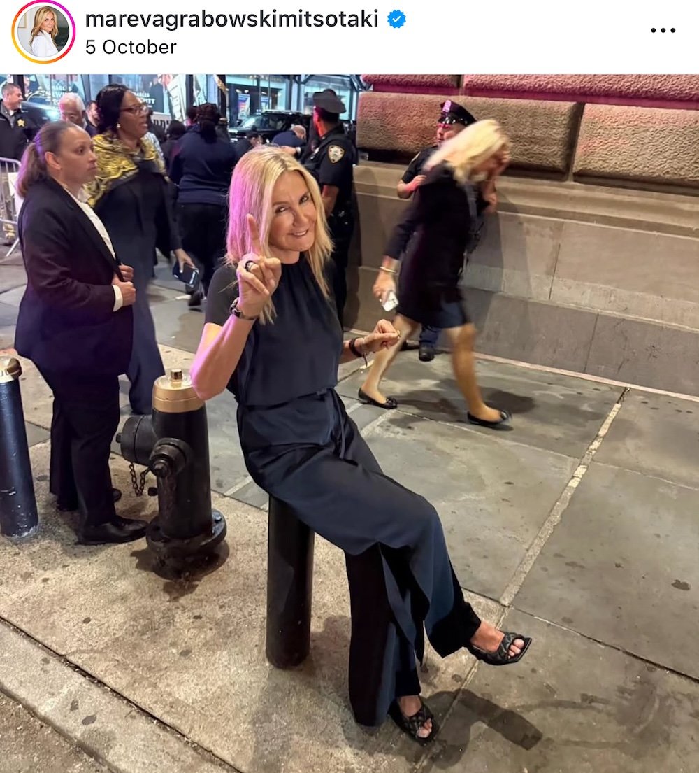 Μαρέβα Μητσοτάκη: Η εμφάνιση με deep navy top και scarf panel, δίπλα στις Anna Wintour και Queen Rania, στο Franca Fund Gala