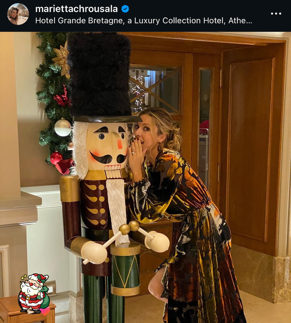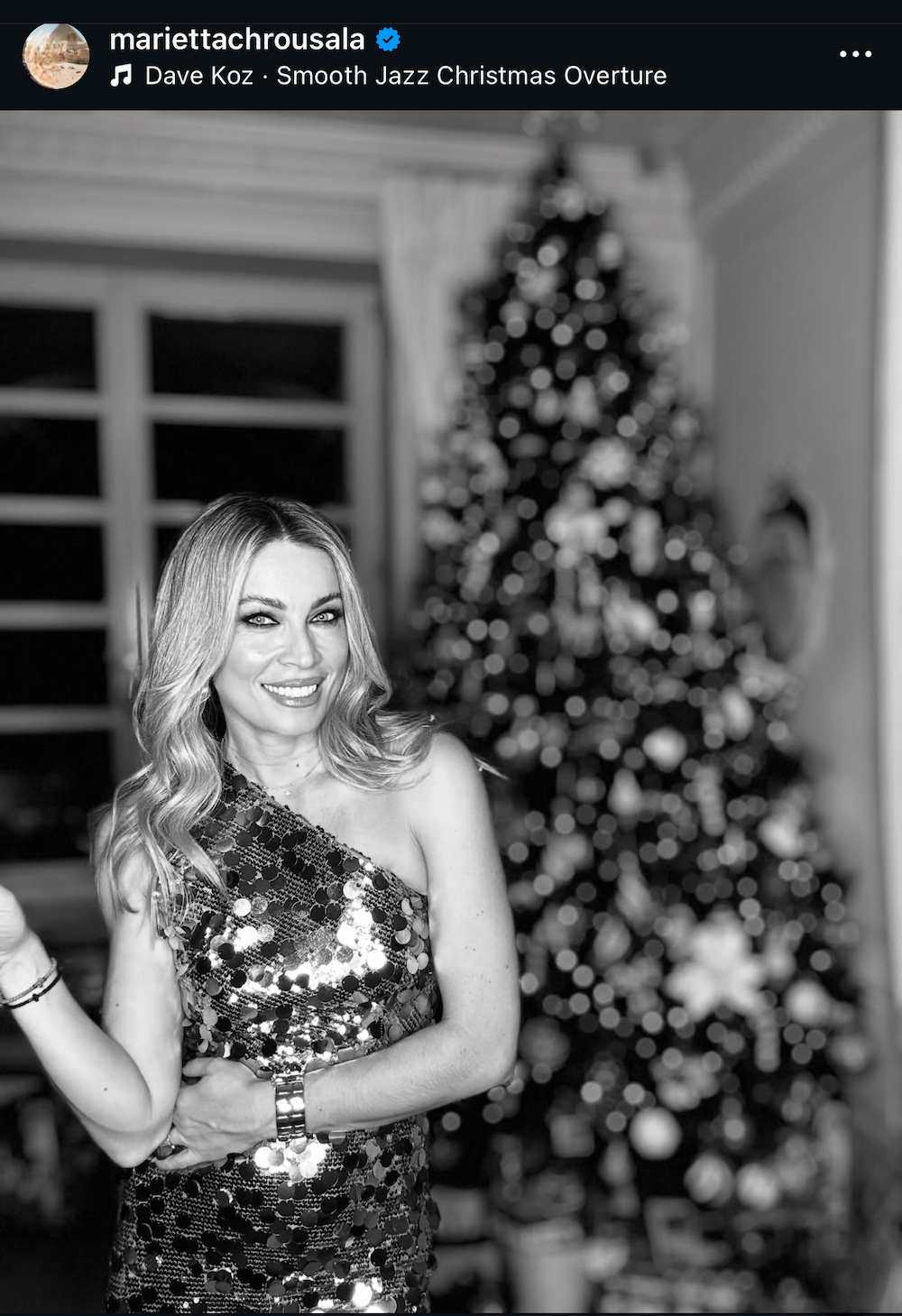 Η Μαριέττα Χρουσαλά κάθε χρόνο φέρνει τη μαγεία των Χριστουγέννων στη ζωή της, όχι μόνο μέσα από τα εντυπωσιακά της ενδυματολογικά σύνολα, αποτέλεσμα της συνεργασίας της με τη σχεδιάστρια Celia Kritharioti, αλλά κυρίως μέσα από το αληθινό της χαμόγελο.