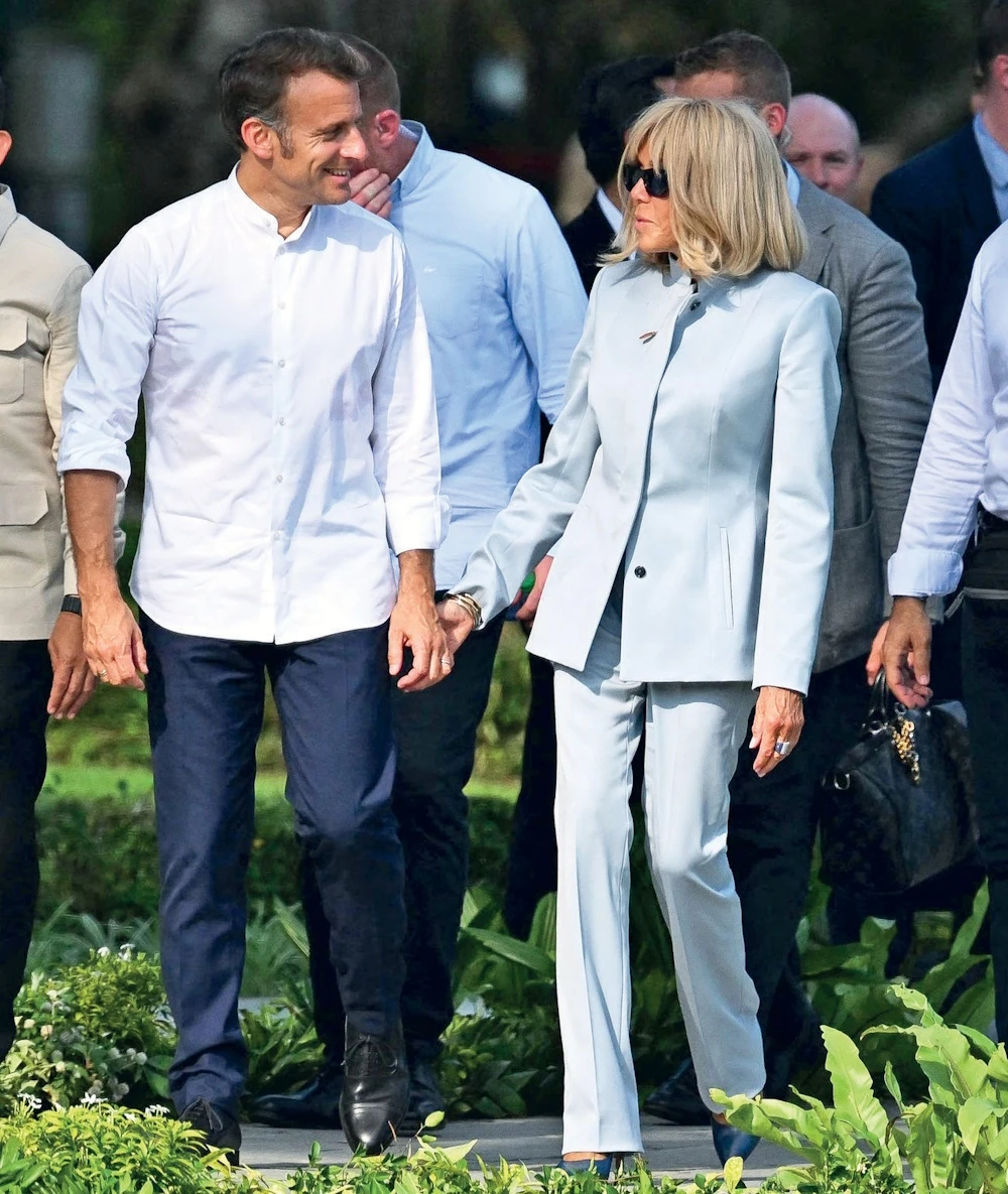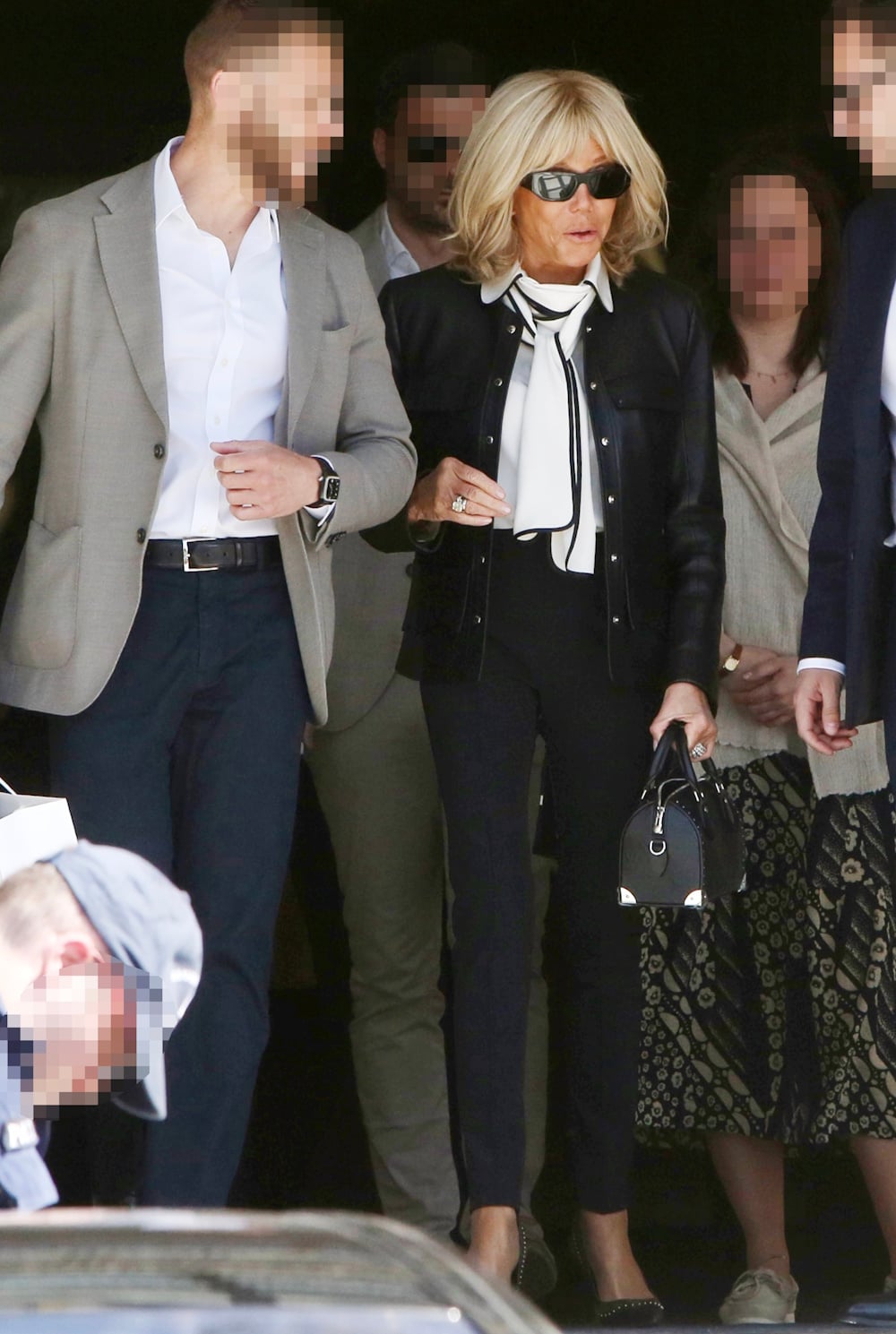 Η Μπριζίτ Μακρόν, η οποία φημίζεται για τις άρτιες στιλιστικές της επιλογές σε εμφανίσεις της τόσο στο Παρίσι, όσο και στα ταξίδια της ανά τον κόσμο, στο πλευρό του προέδρου της Γαλλίας, αυτή τη φορά, επέλεξε ένα μαύρο δερμάτινο jacket με καθαρές γραμμές και ένα λευκό πουκάμισο με μαύρες λεπτομέρειες, που έκαναν τη διαφορά. Τα συνδύασε με ένα ultra slim μαύρο παντελόνι που αναδείκνυε τη σιλουέτα της. Ολοκλήρωσε το λουκ της με στιλάτες γόβες με τρουκς και δερμάτινη πολυτελή τσάντα του γνωστού γαλλικού οίκου μόδας, louis vuitton.