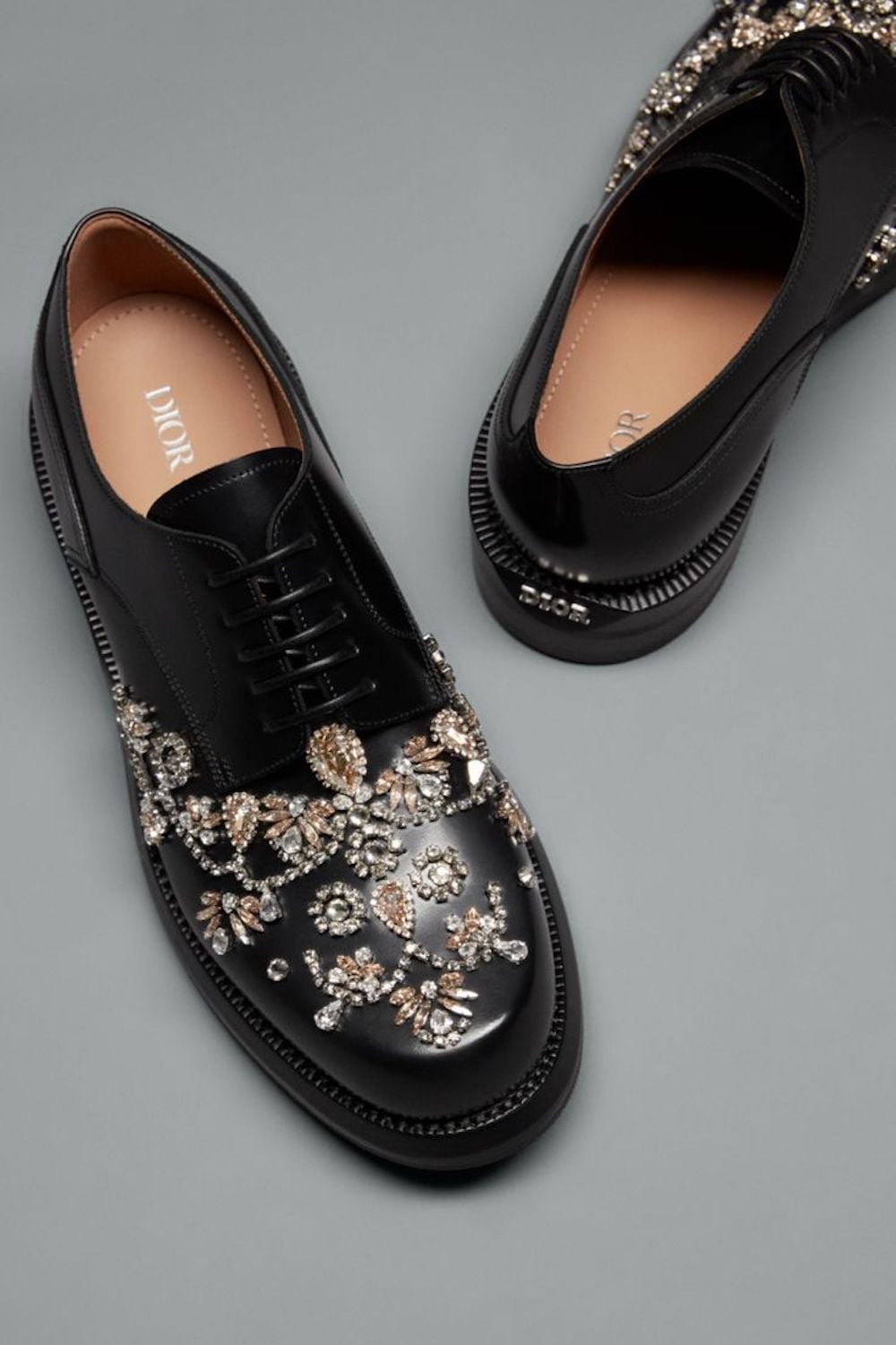 Τα vintage Dior shoes ολοκληρώνουν το look χωρίς να το “εξηγούν”. Είναι πιο formal, πιο διακοσμητικά, αλλά δεν δημιουργούν αντίφαση και απλά προσθέτουν ένα δεύτερο επίπεδο.