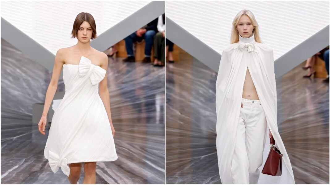 Τα παραμυθένια φορέματα με έντονους όγκους που κατέληγαν σε κομψούς φιόγκους μαρτυρούσαν τη σύγχρονη ματιά του σχεδιαστή, ενώ οι πλεκτές κάπες, συνδυασμένες με casual items, γείωναν τα outfit και φλέρταραν με τη youth culture, δίνοντάς τους έναν πιο προσβάσιμο και καθημερινό χαρακτήρα.