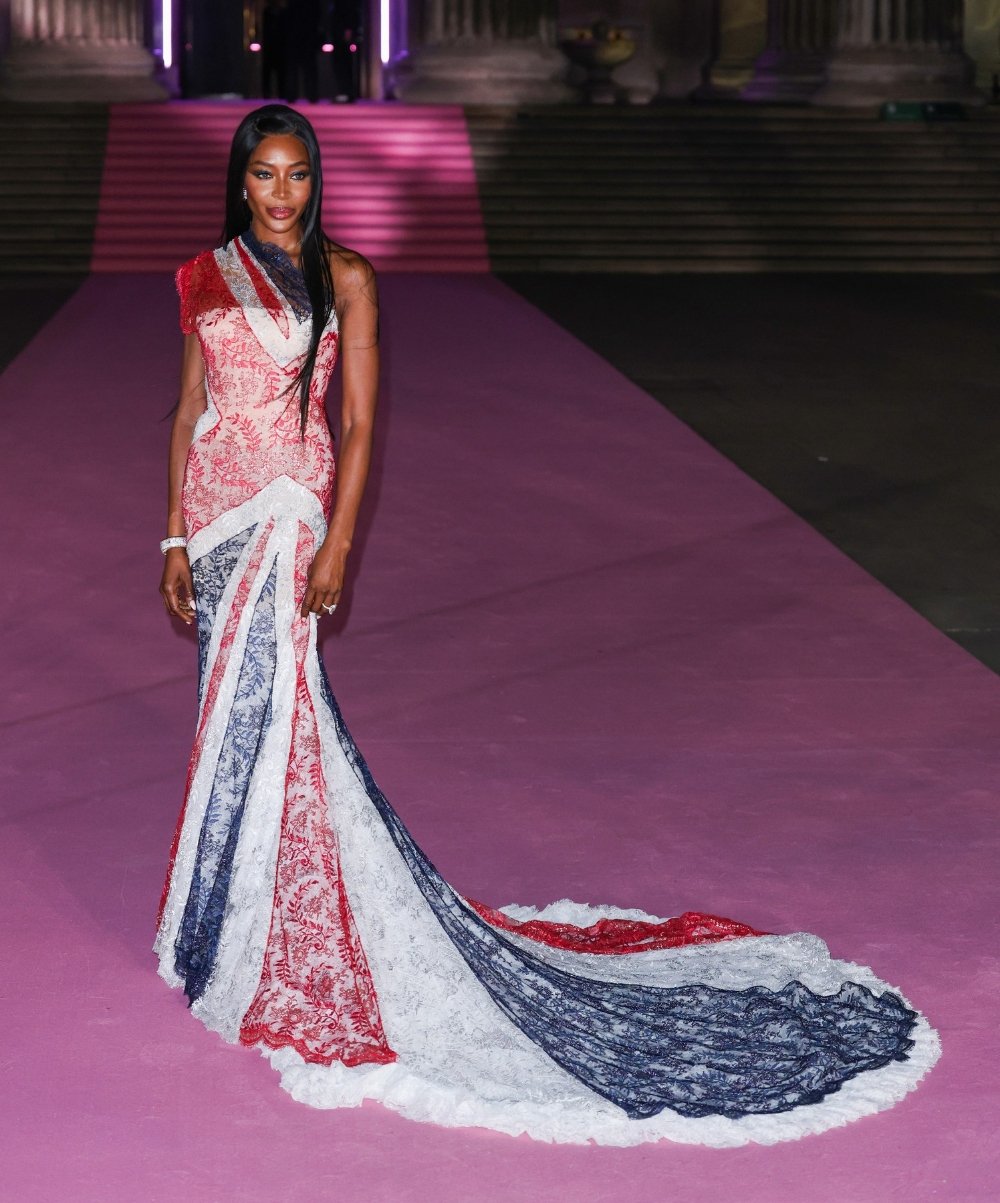 Η Ναόμι Κάμπελ επίσης παρευρέθηκε, φορώντας μια τουαλέτα Givenchy με τη Βρετανική σημαία, προσθέτοντας μια παιχνιδιάρικη εθνική πινελιά στη βραδιά.