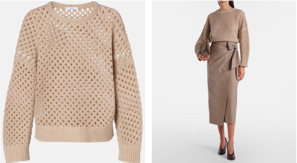 Η τάση των αραιών πλεκτών για τον χειμώνα 2025 προτείνει πουλόβερ που “αναπνέουν”, φορεμένα πάνω από bralette, με δερμάτινες μίνι φούστες ή ψηλόμεσα παντελόνια. Ο συνδυασμός με chain-detail ankle boots, όπως στη φωτογράφιση της Αθηνάς, κάνει το look πιο τολμηρό και πιο αληθινό.