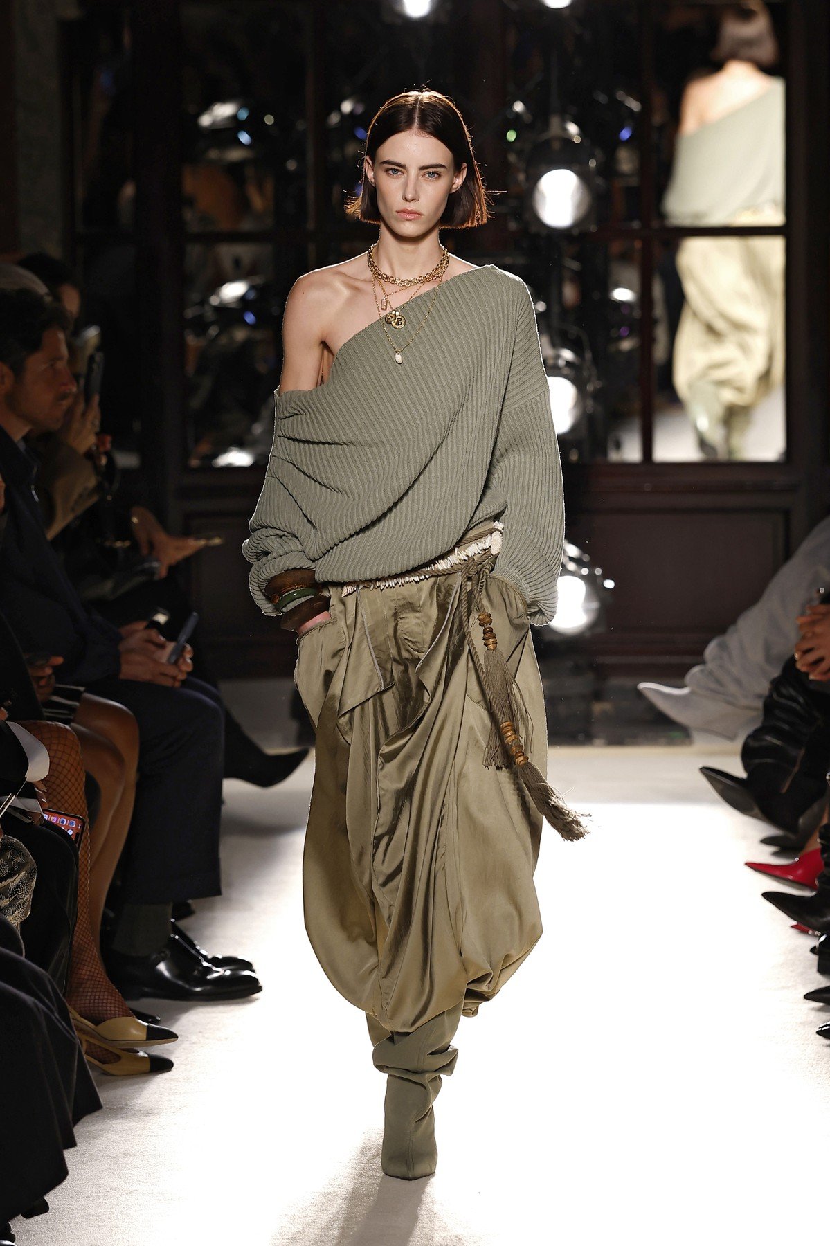 - Σχεδιαστές όπως οι Alexander McQueen και Ann Demeulemeester προτείνουν ρούχα που αποπνέουν εσωτερική επανάσταση και ρομαντισμό, ενώ Isabel Marant και Balmain προσφέρουν πιο γήινες ερμηνείες.