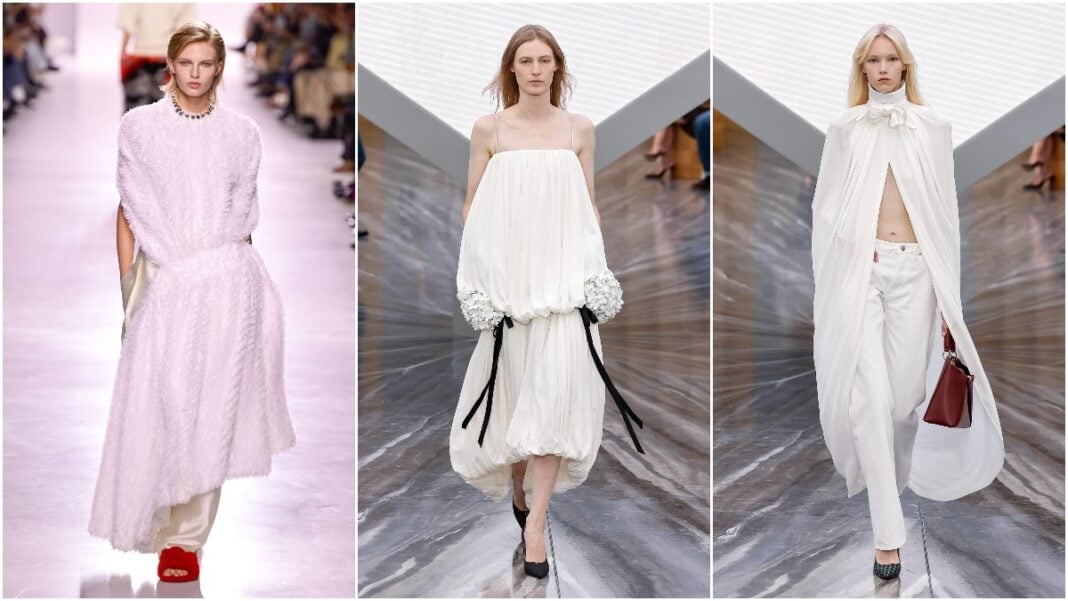 - Οι total-white εμφανίσεις κυριαρχούν στις συλλογές άνοιξης/καλοκαιριού 2026, με το Cloud Dancer να ενσωματώνεται μέσω layering και λευκών λεπτομερειών.