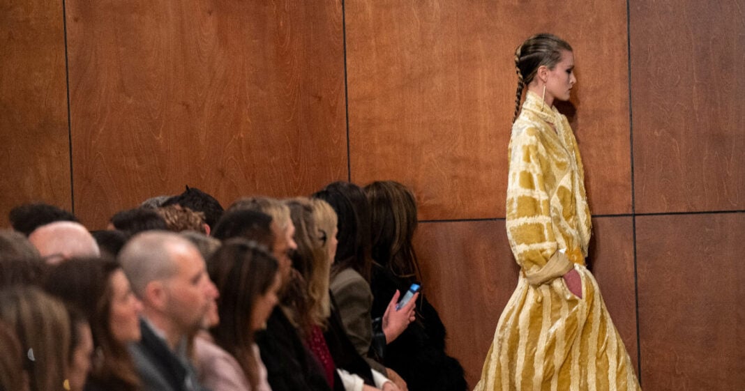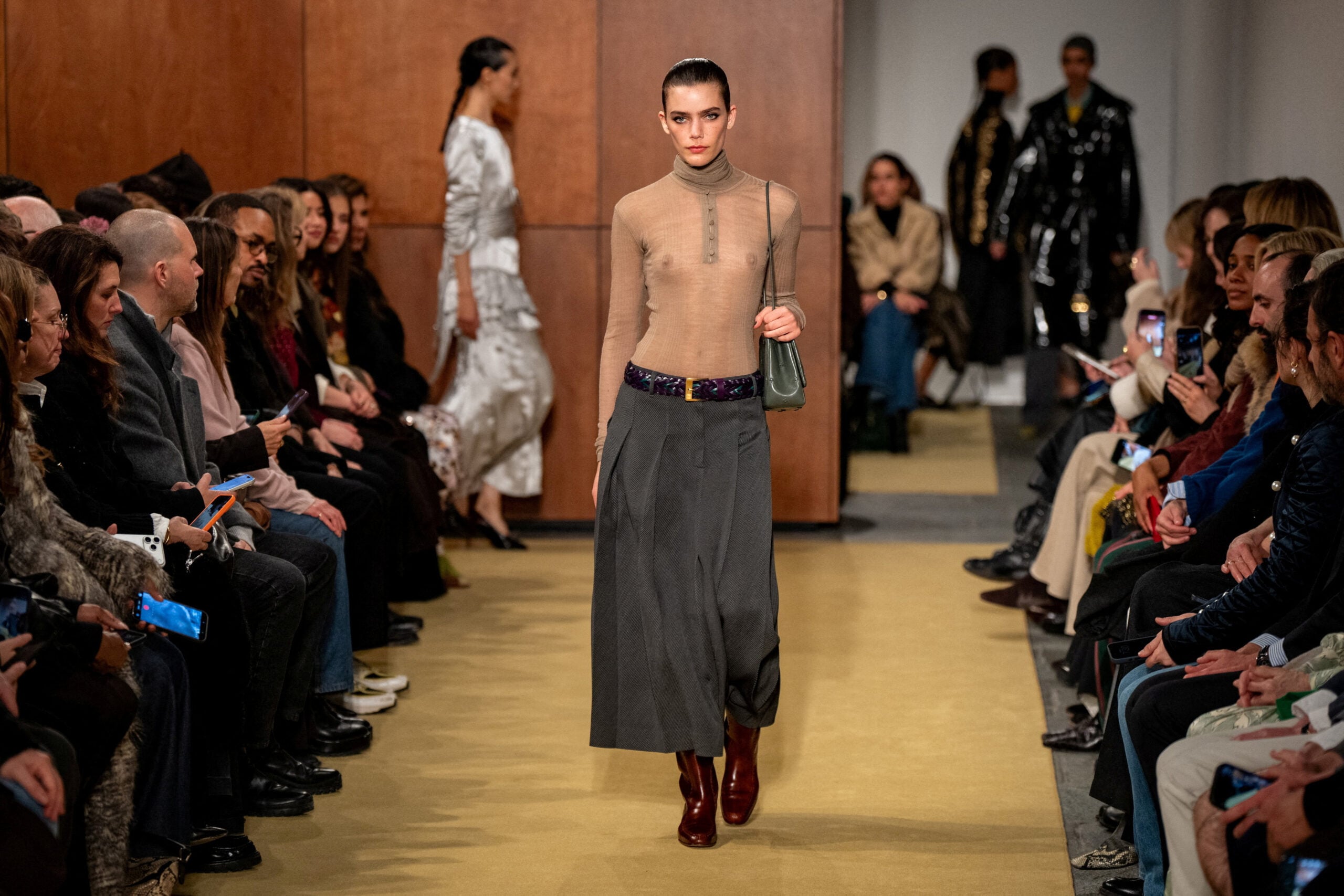 SENSITIVE MATERIAL. THIS IMAGE MAY OFFEND OR DISTURB A model presents a creation from the Tory Burch Fall/Winter 2026 collection during New York Fashion Week in New York City, U.S., February 11, 2026. REUTERS/Angelina Katsanis