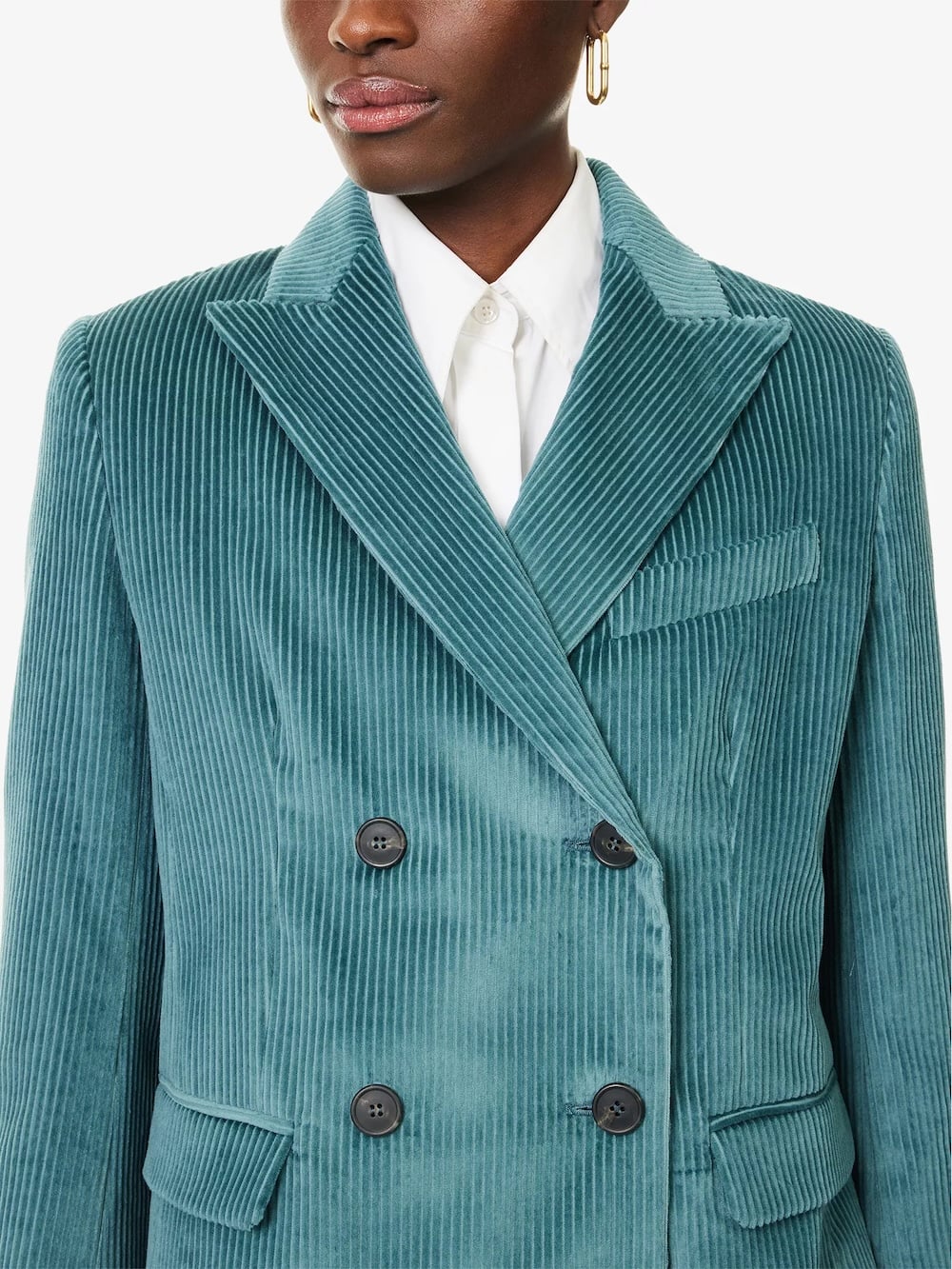 Το tailoring αποδεσμεύεται από τον επαγγελματικό του ρόλο. Ένα corduroy double-breasted σακάκι από τη Weekend Max Mara έχει βάρος, αφή και μια αίσθηση καθημερινής φροντίδας. Δεν είναι αυστηρό, ούτε χαλαρό. Είναι το είδος του ρούχου που φοράς για να κινηθείς μέσα στην πόλη, όχι για να δηλώσεις κάτι.